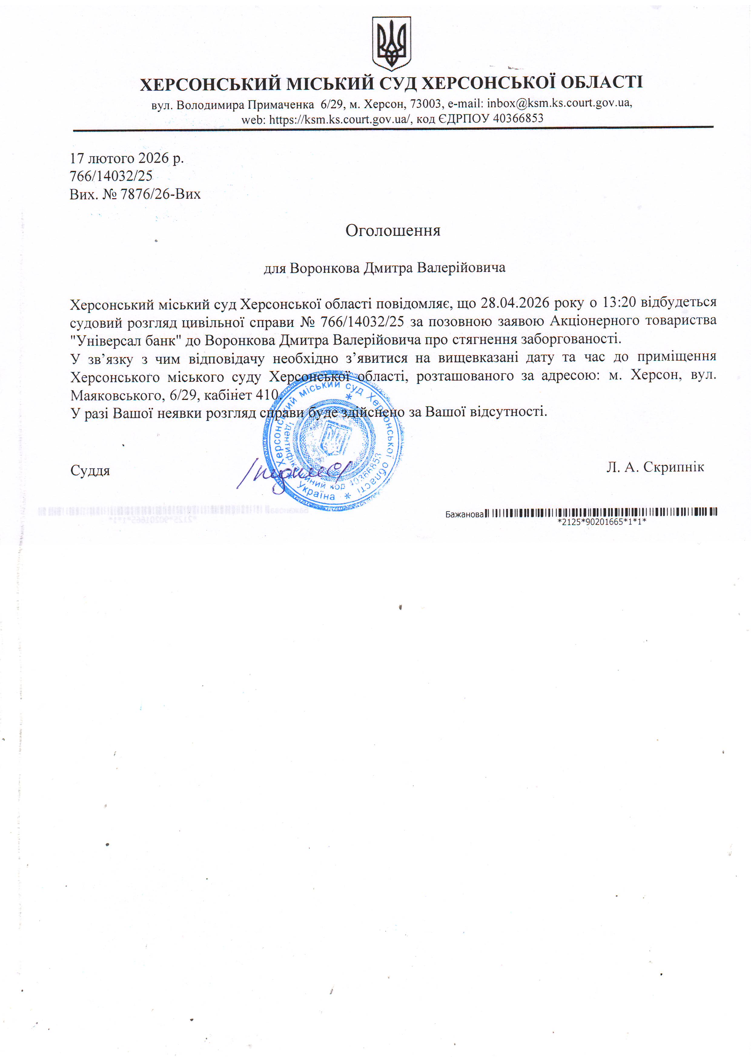 ОГОЛОШЕННЯ ПРО ВИКЛИК ДО СУДУ