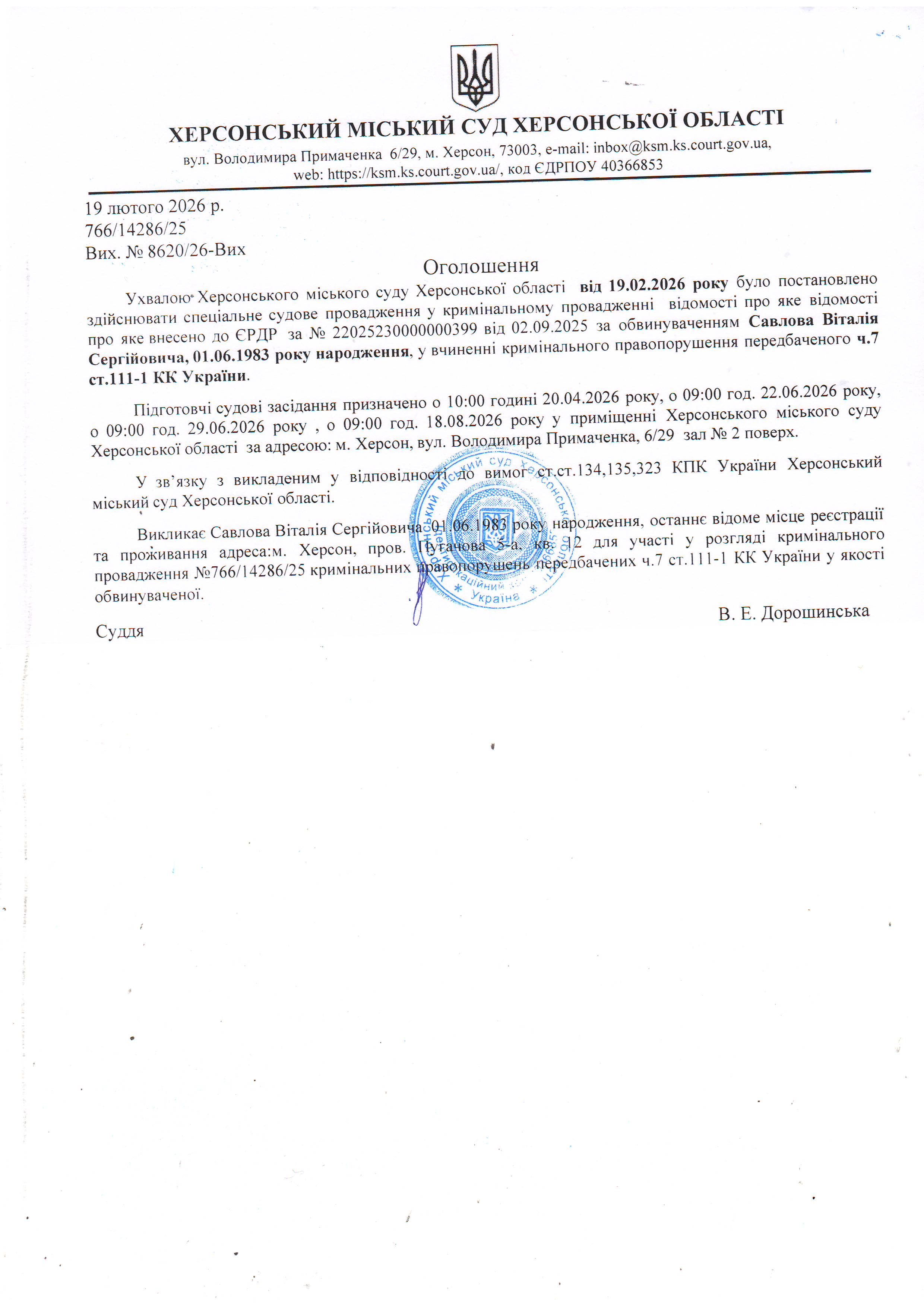 ОГОЛОШЕННЯ ПРО ВИКЛИК ДО СУДУ