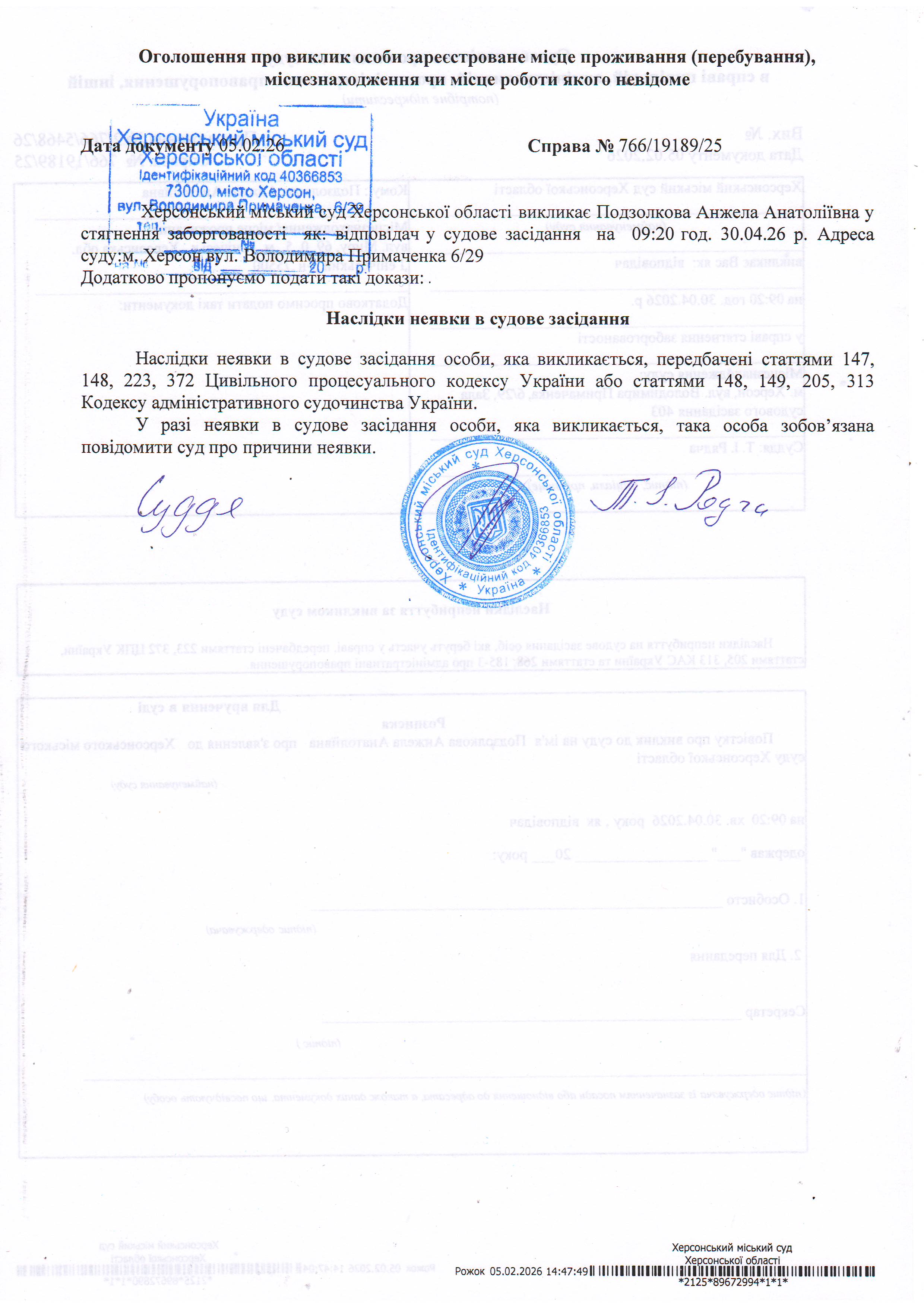 Оголошення про виклик особи в суд та повідомлення про судове рішення