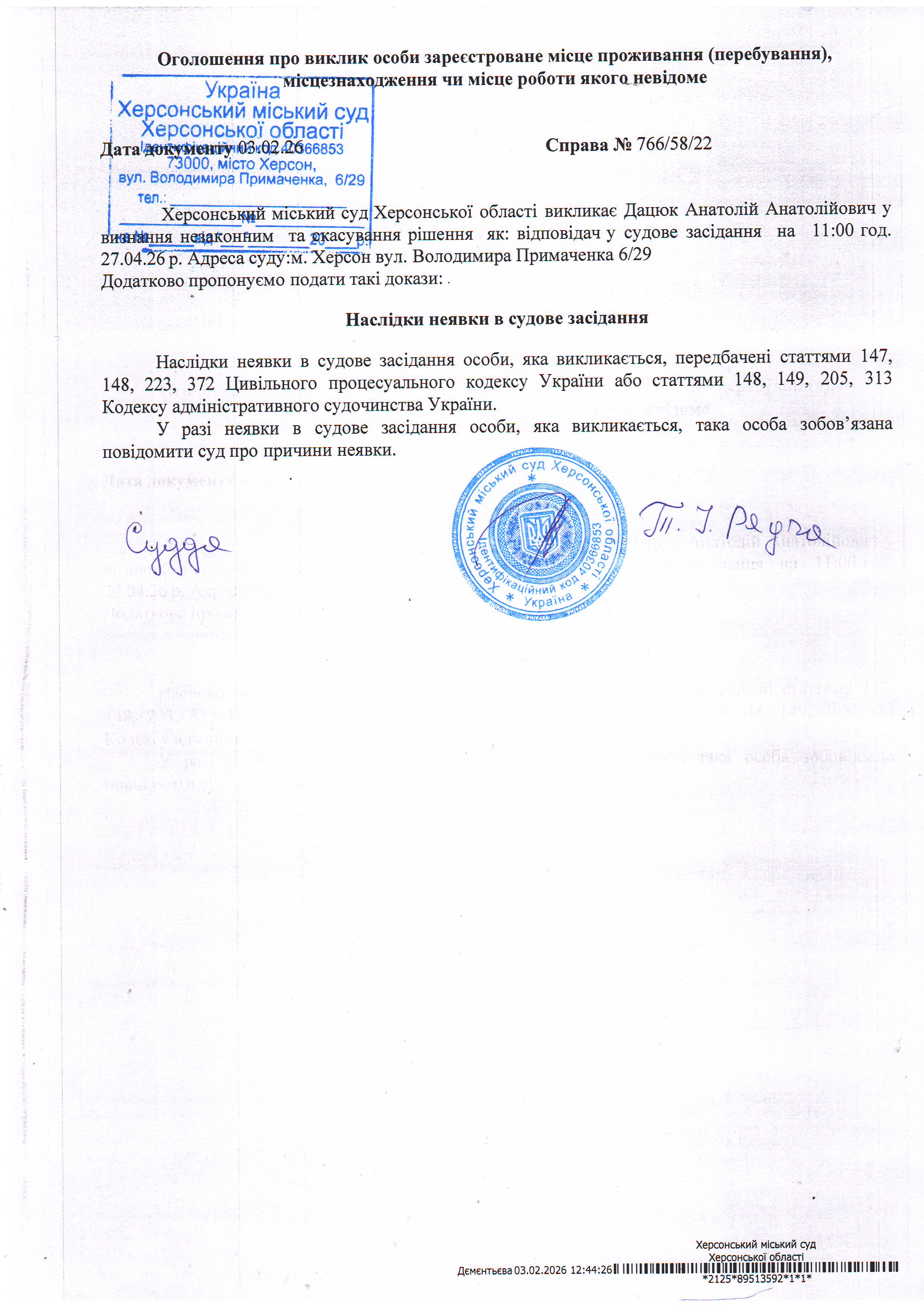 ОГОЛОШЕННЯ ПРО ВИКЛИК ДО СУДУ