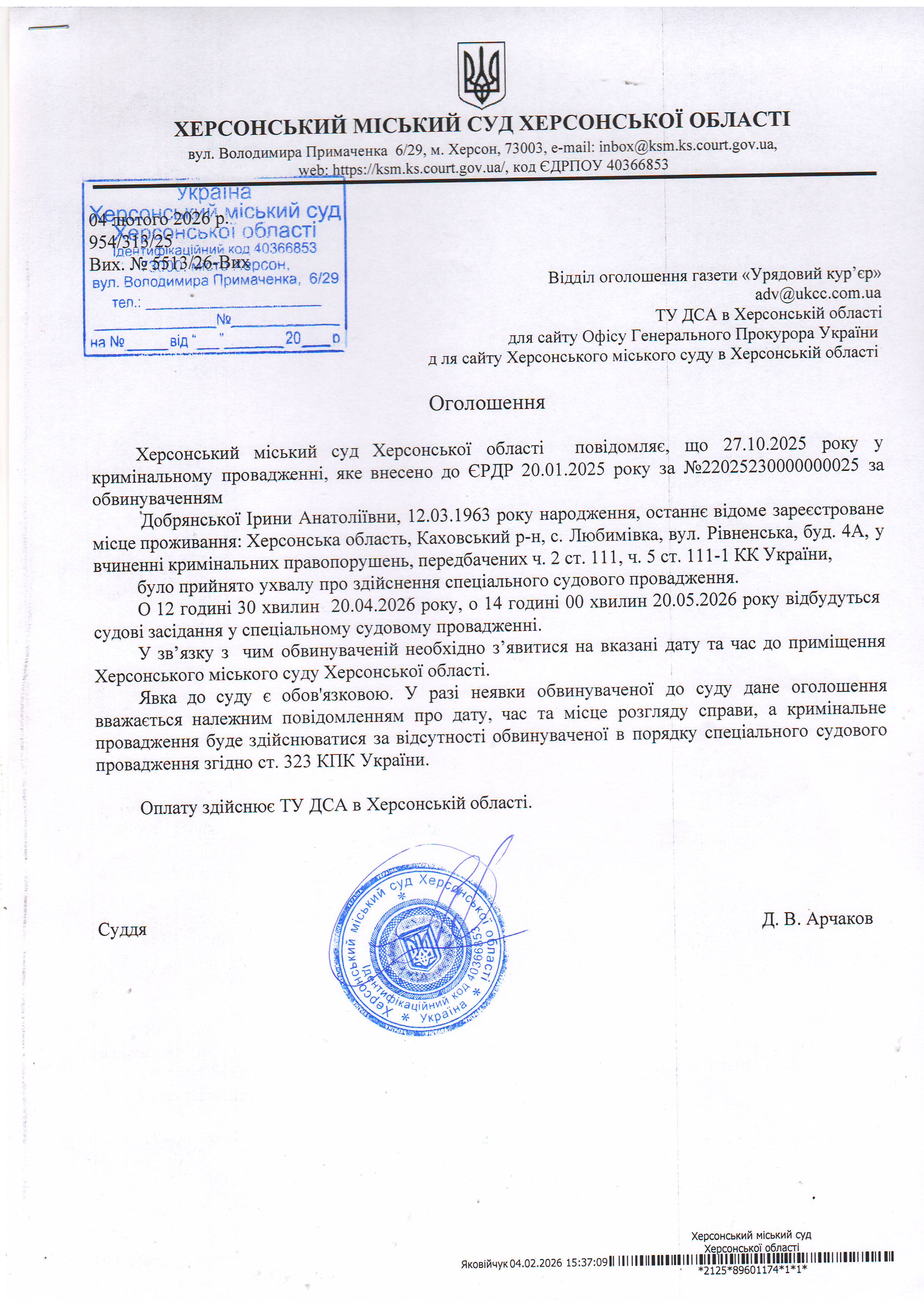 Оголошення про виклик особи в суд та повідомлення про судове рішення