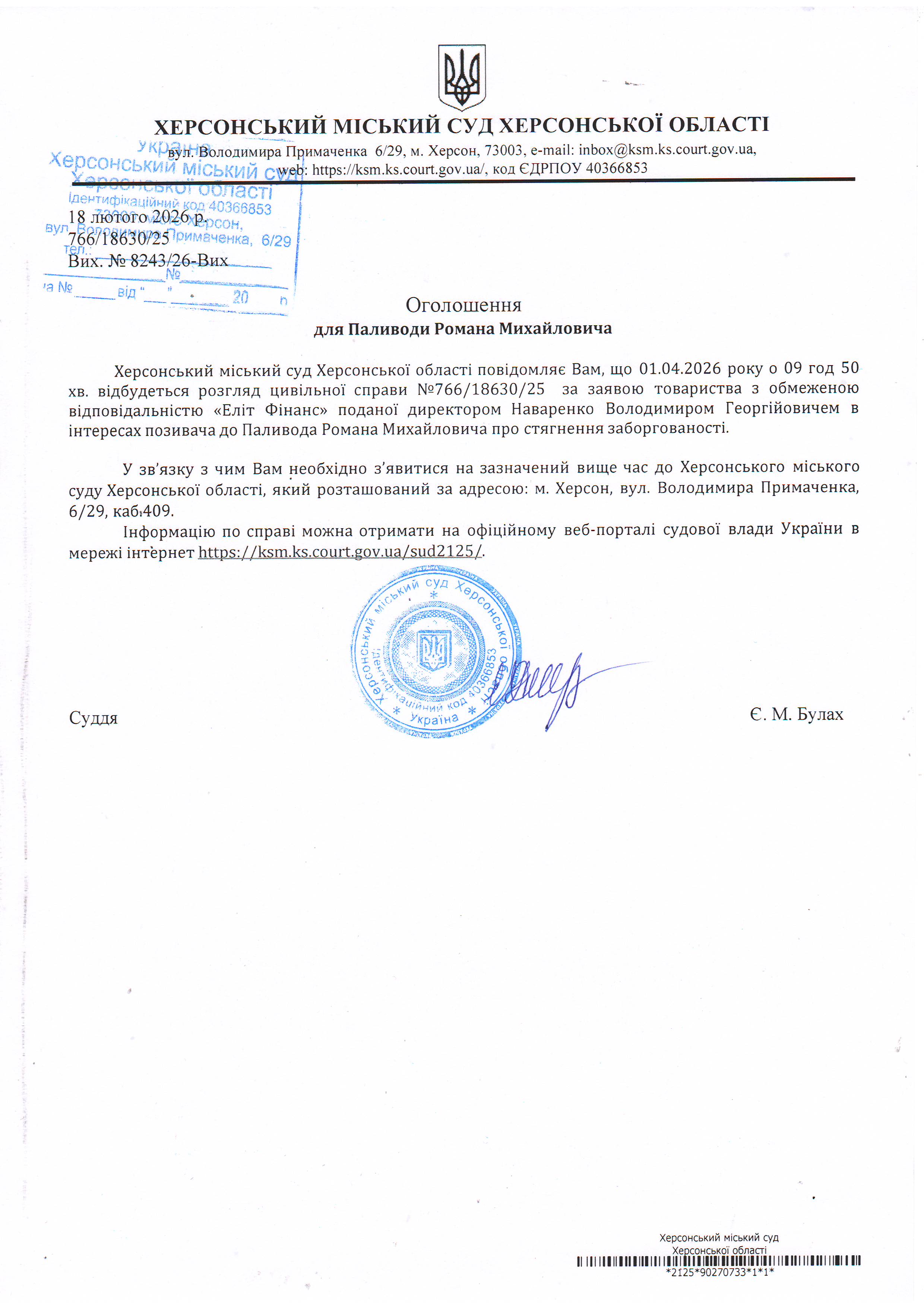 ОГОЛОШЕННЯ ПРО ВИКЛИК ДО СУДУ
