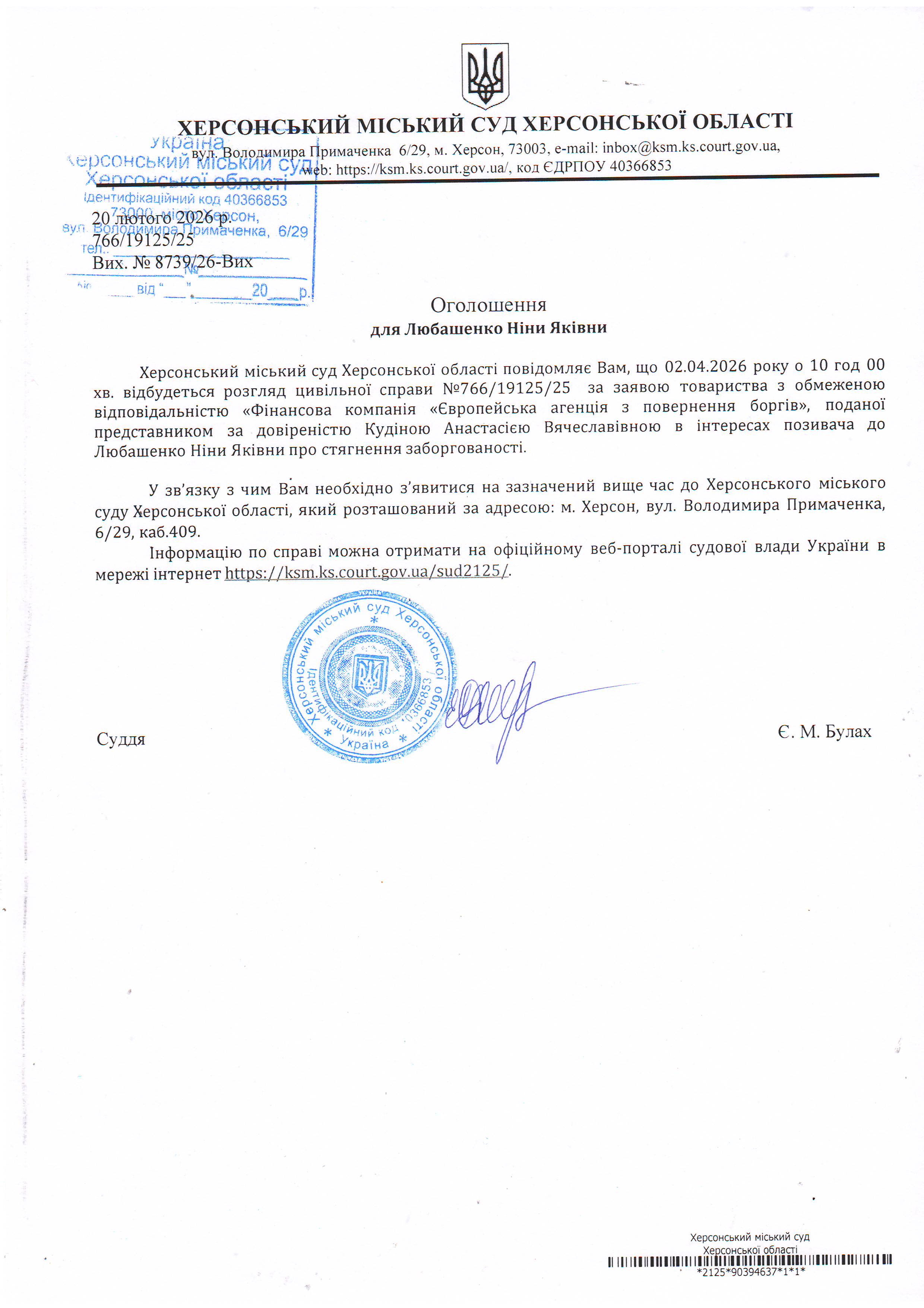 ОГОЛОШЕННЯ ПРО ВИКЛИК ДО СУДУ