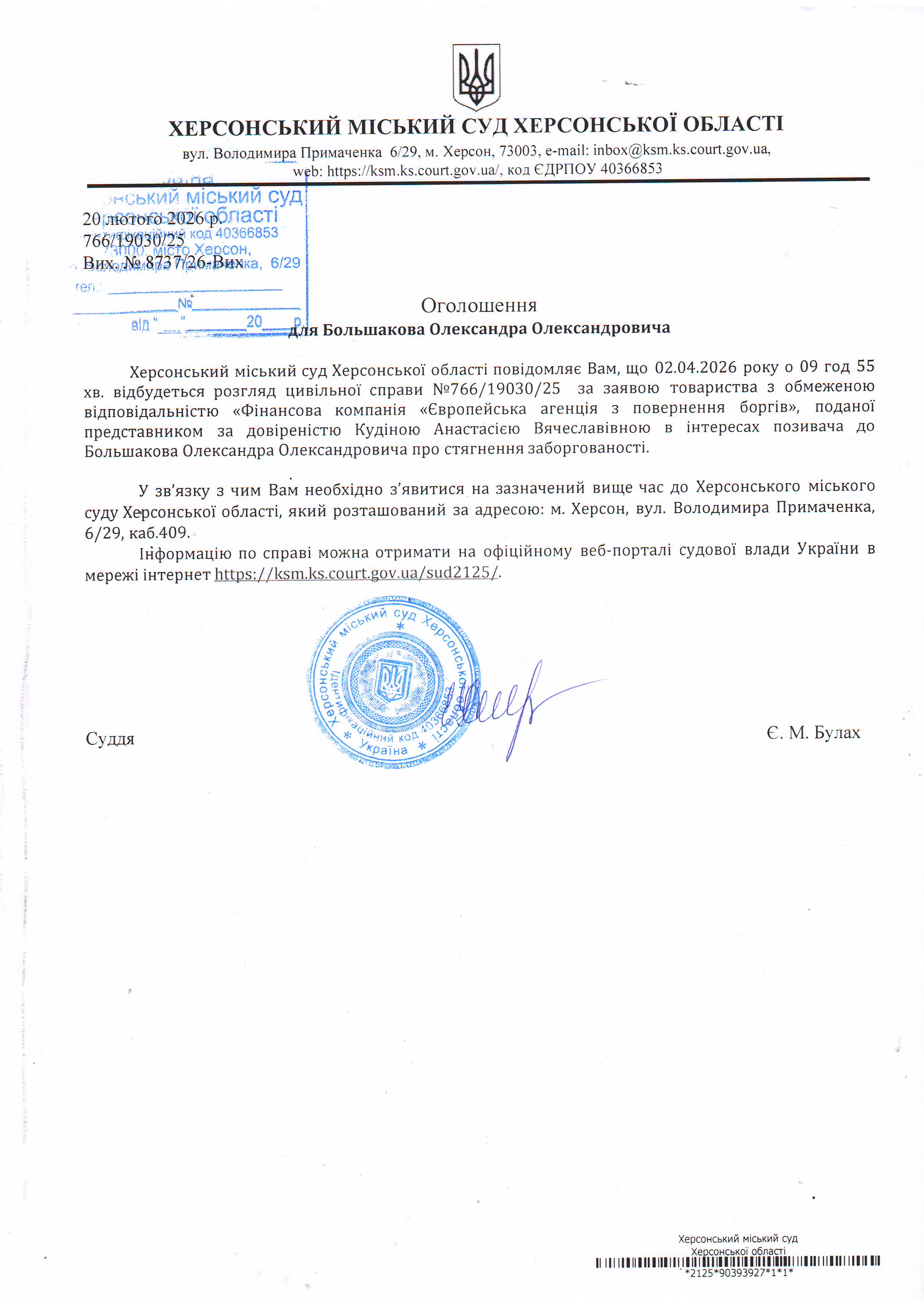 ОГОЛОШЕННЯ ПРО ВИКЛИК ДО СУДУ