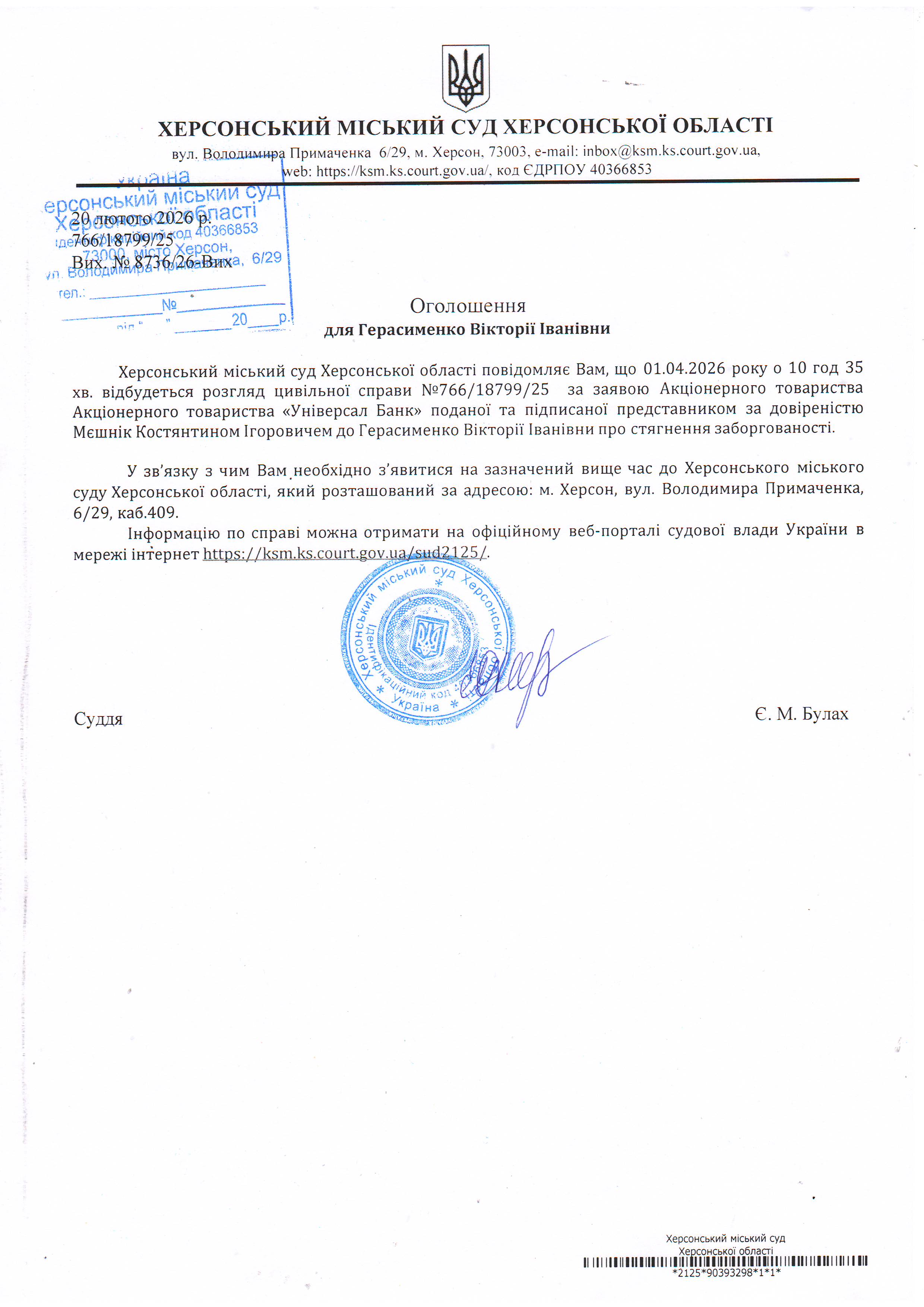 ОГОЛОШЕННЯ ПРО ВИКЛИК ДО СУДУ