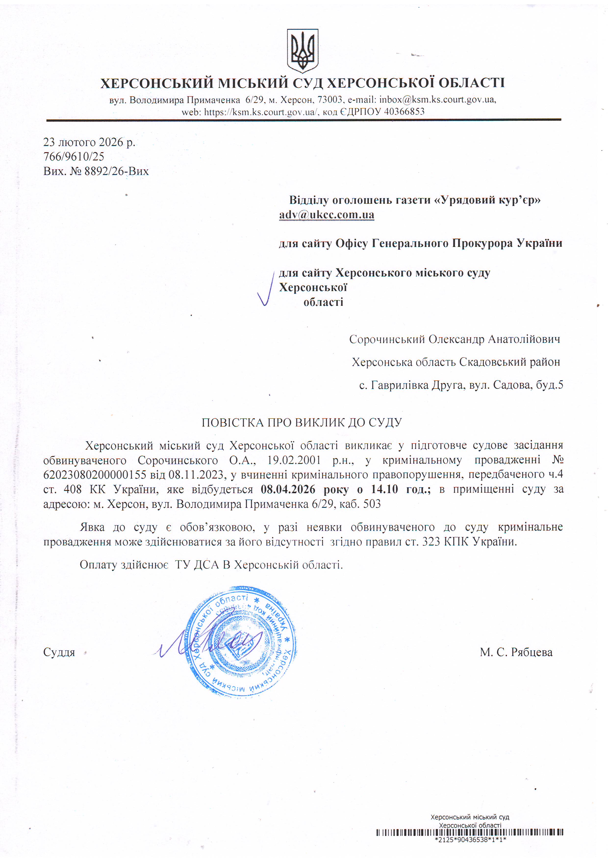 ОГОЛОШЕННЯ ПРО ВИКЛИК ДО СУДУ