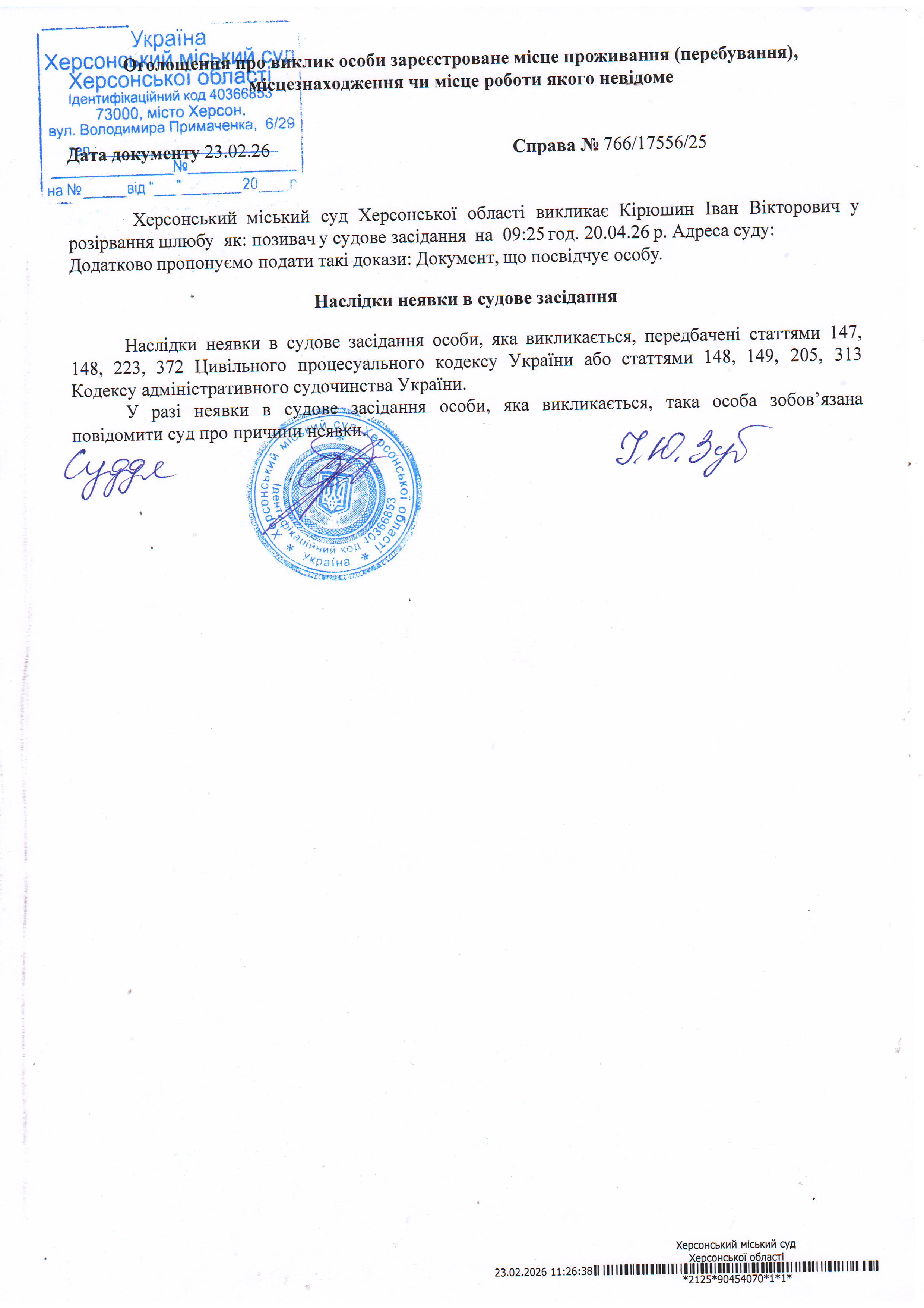 ОГОЛОШЕННЯ ПРО ВИКЛИК ДО СУДУ