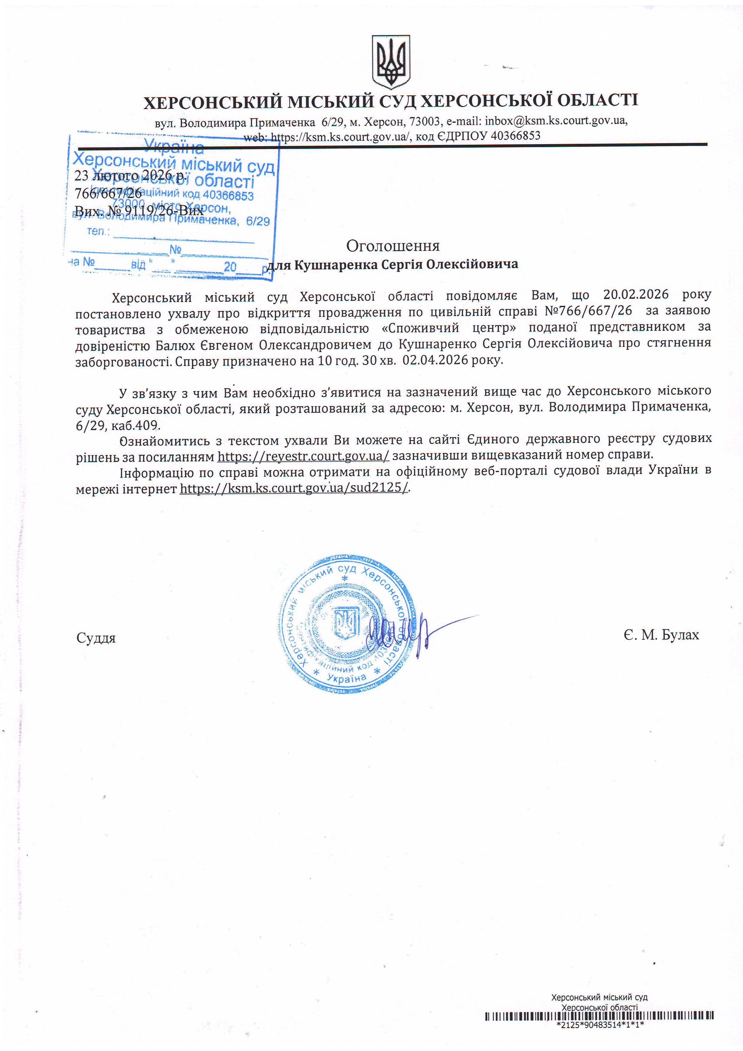 ОГОЛОШЕННЯ ПРО ВИКЛИК ДО СУДУ