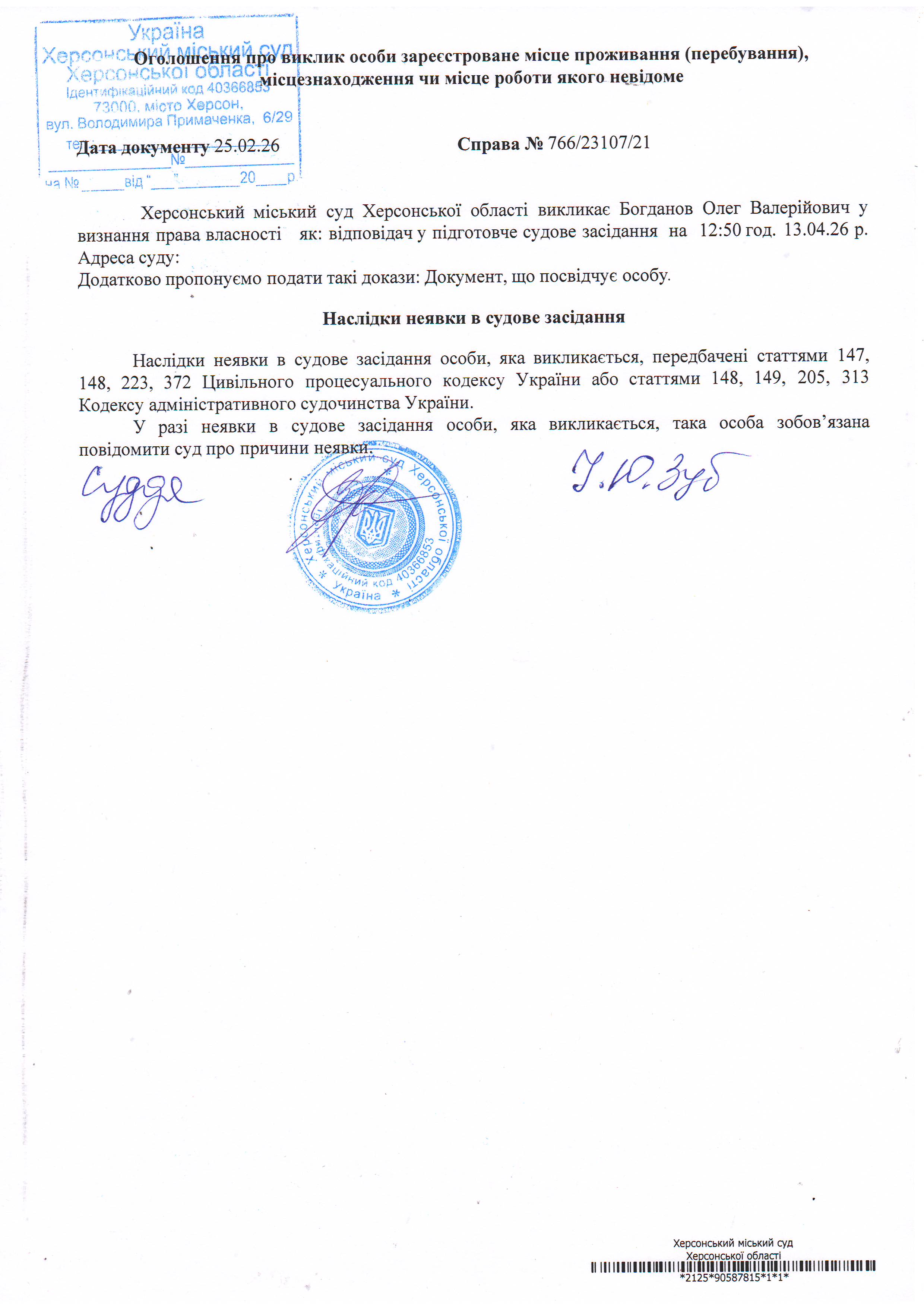ОГОЛОШЕННЯ ПРО ВИКЛИК ДО СУДУ