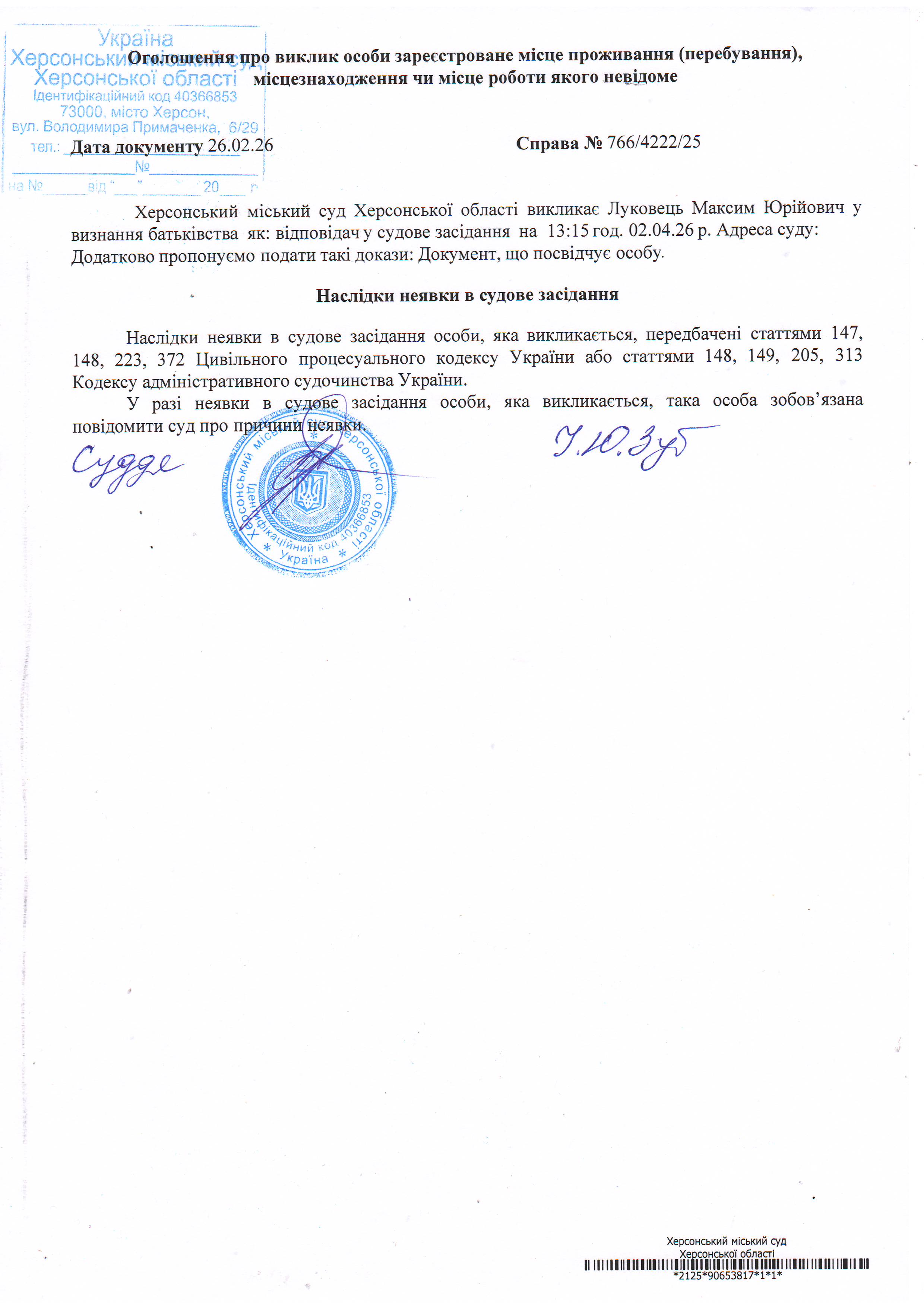 ОГОЛОШЕННЯ ПРО ВИКЛИК ДО СУДУ