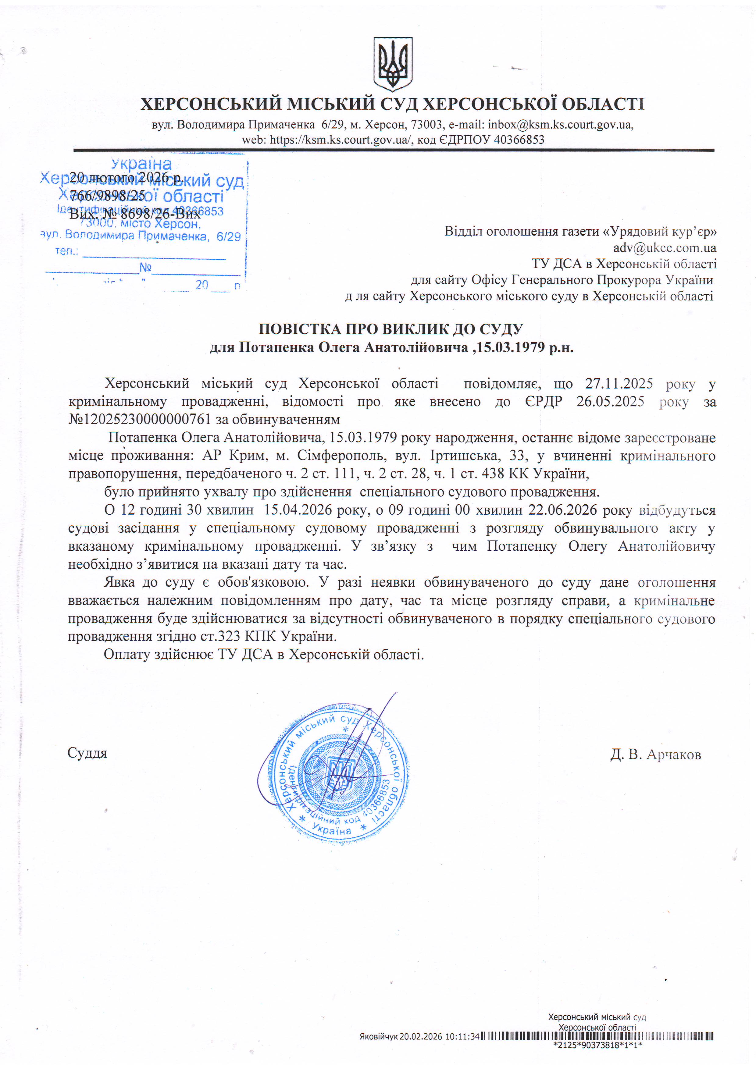 ОГОЛОШЕННЯ ПРО ВИКЛИК ДО СУДУ