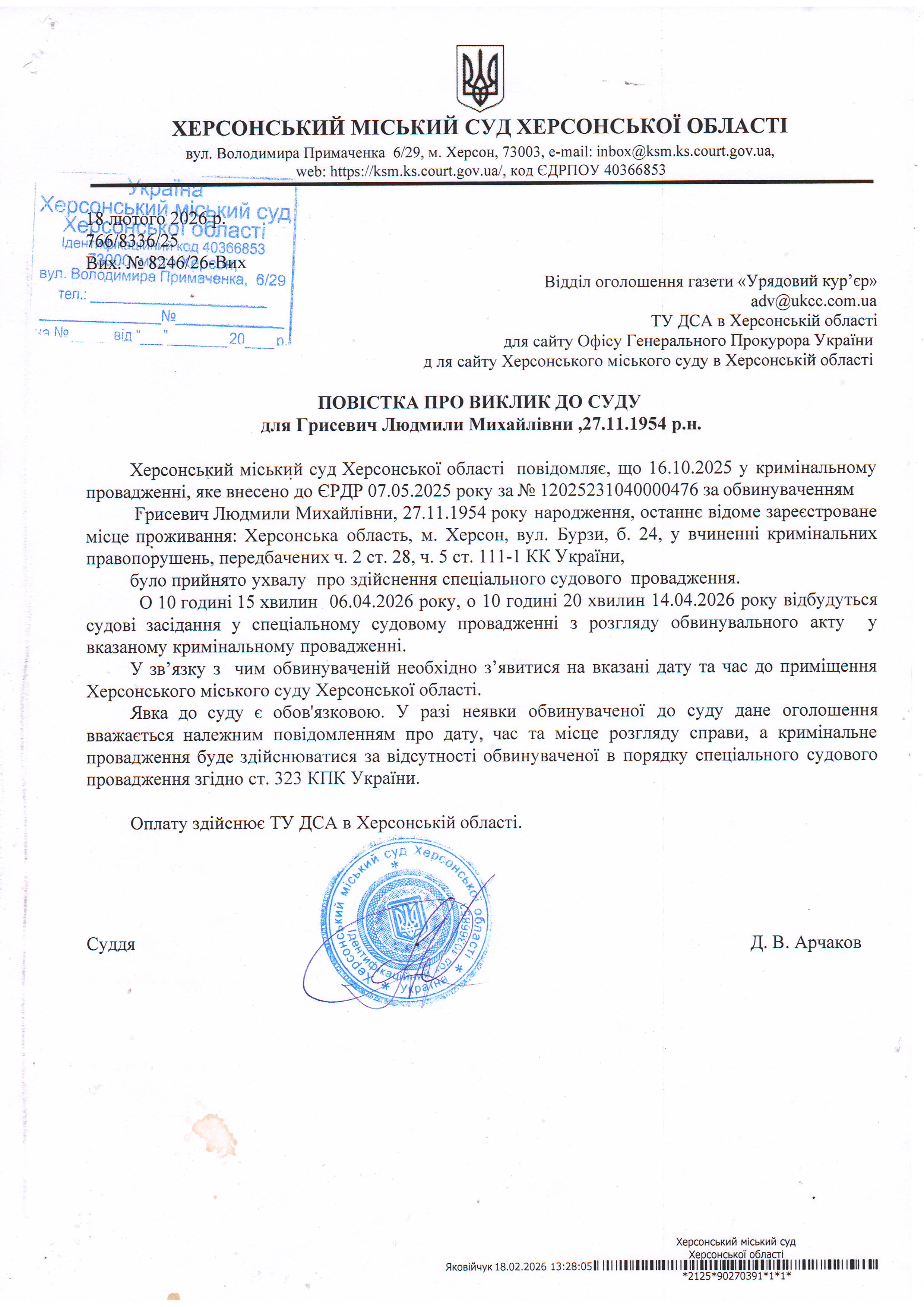 ОГОЛОШЕННЯ ПРО ВИКЛИК ДО СУДУ
