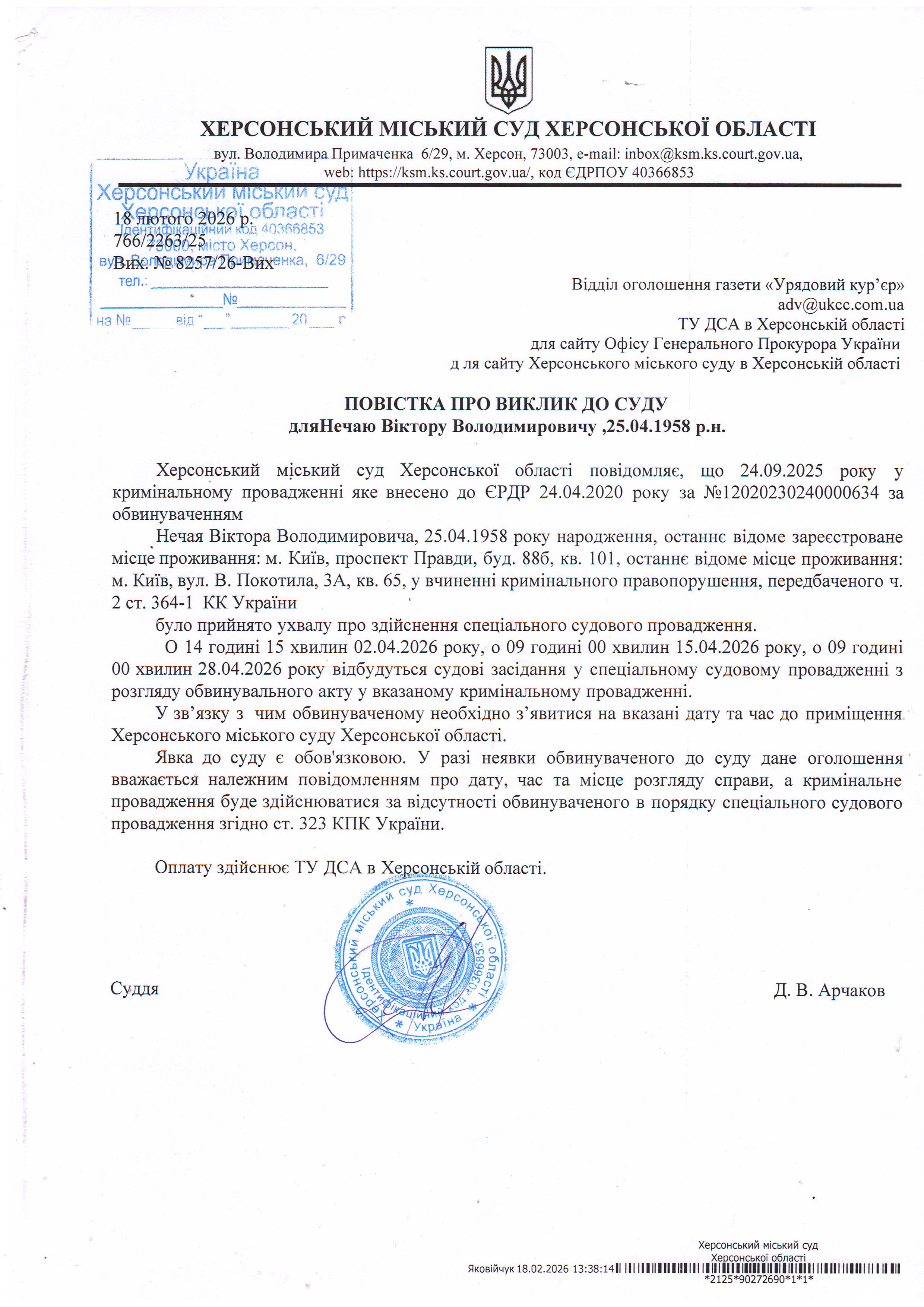 ОГОЛОШЕННЯ ПРО ВИКЛИК ДО СУДУ