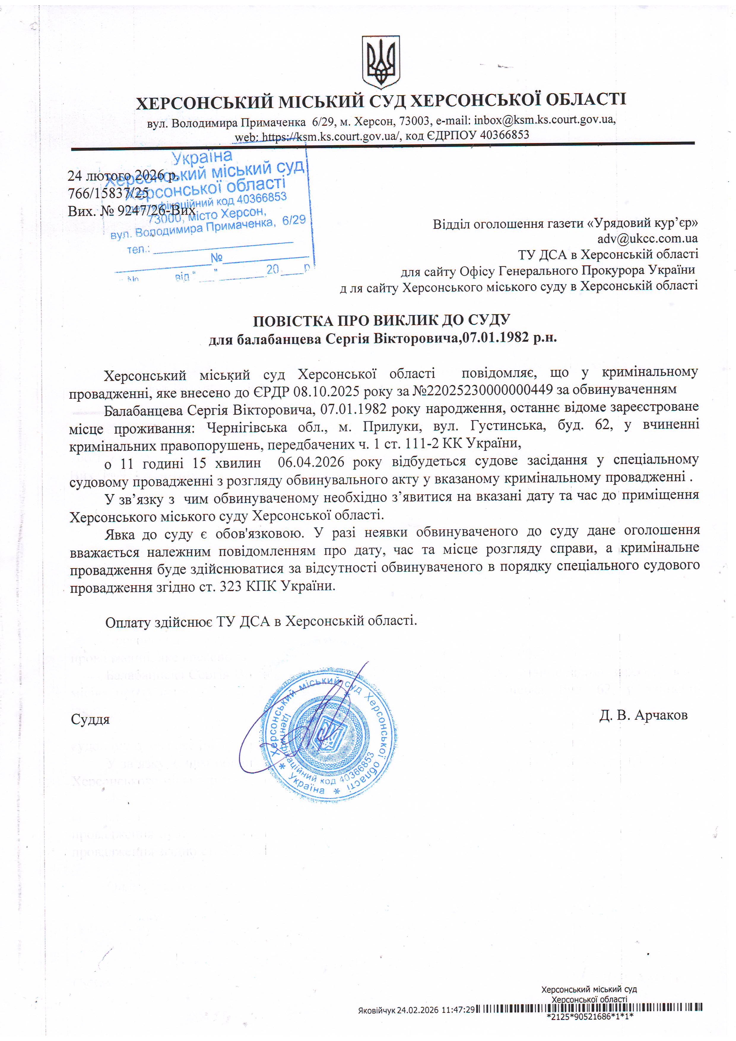 ОГОЛОШЕННЯ ПРО ВИКЛИК ДО СУДУ