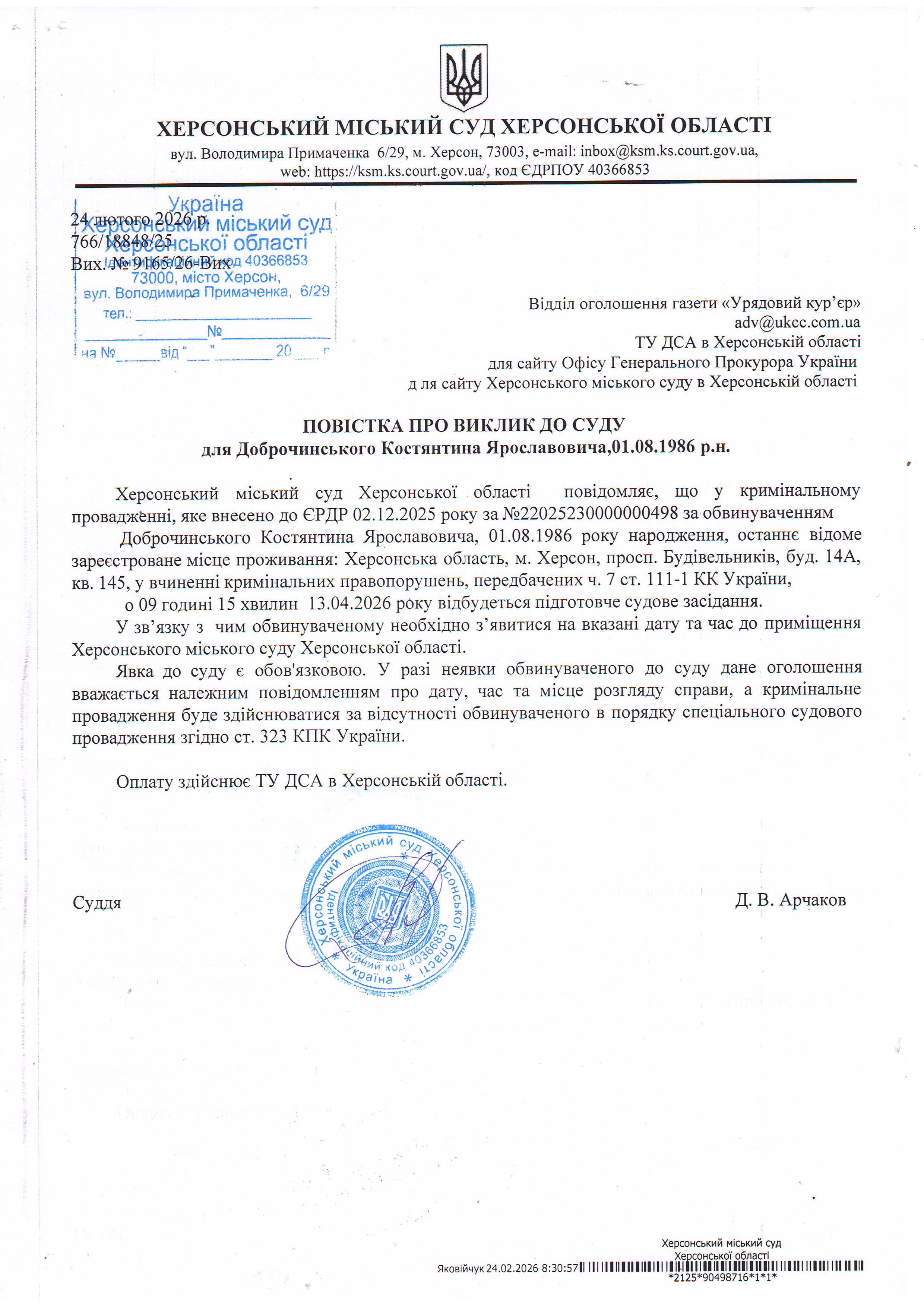 ОГОЛОШЕННЯ ПРО ВИКЛИК ДО СУДУ