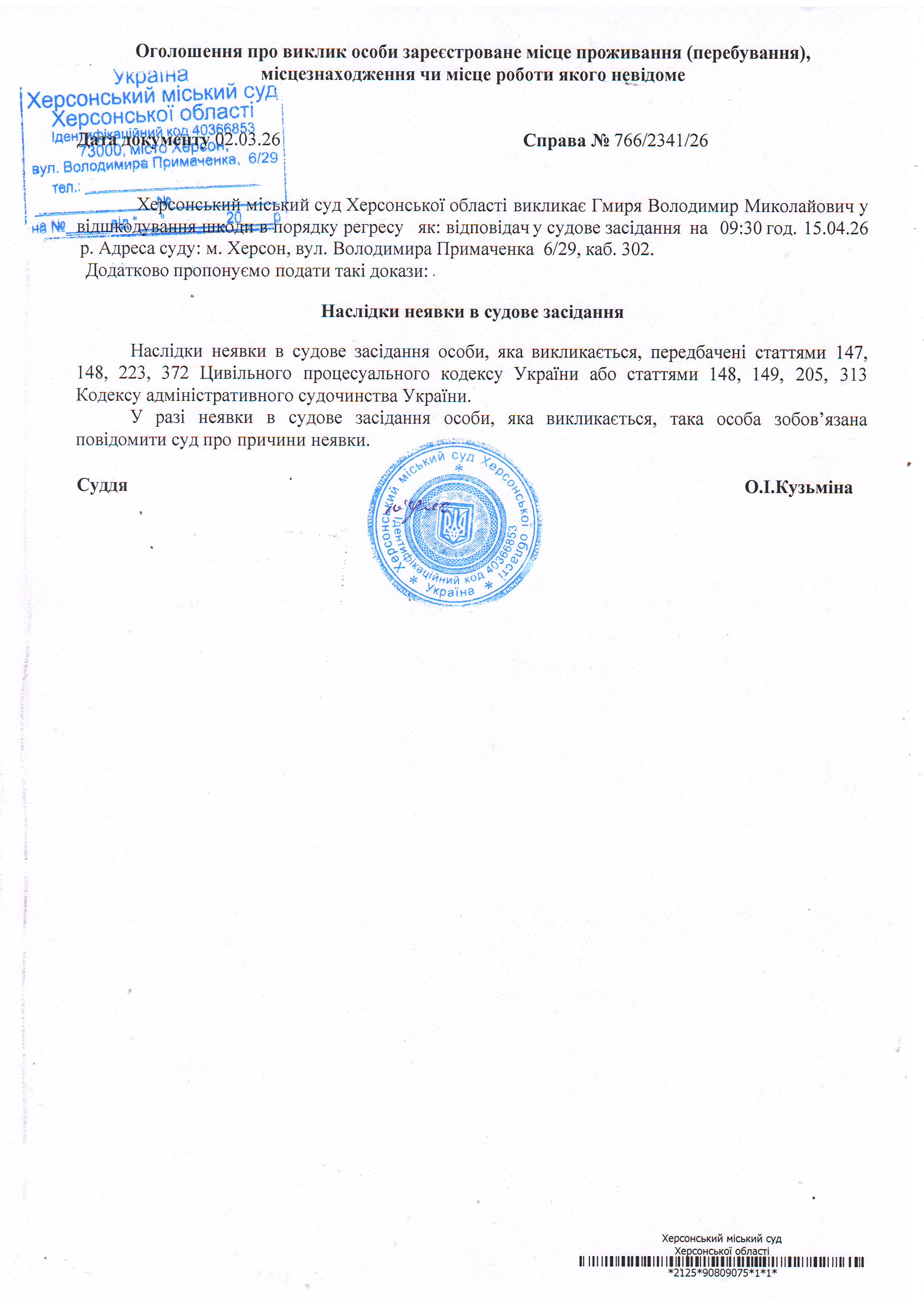 ОГОЛОШЕННЯ ПРО ВИКЛИК ДО СУДУ