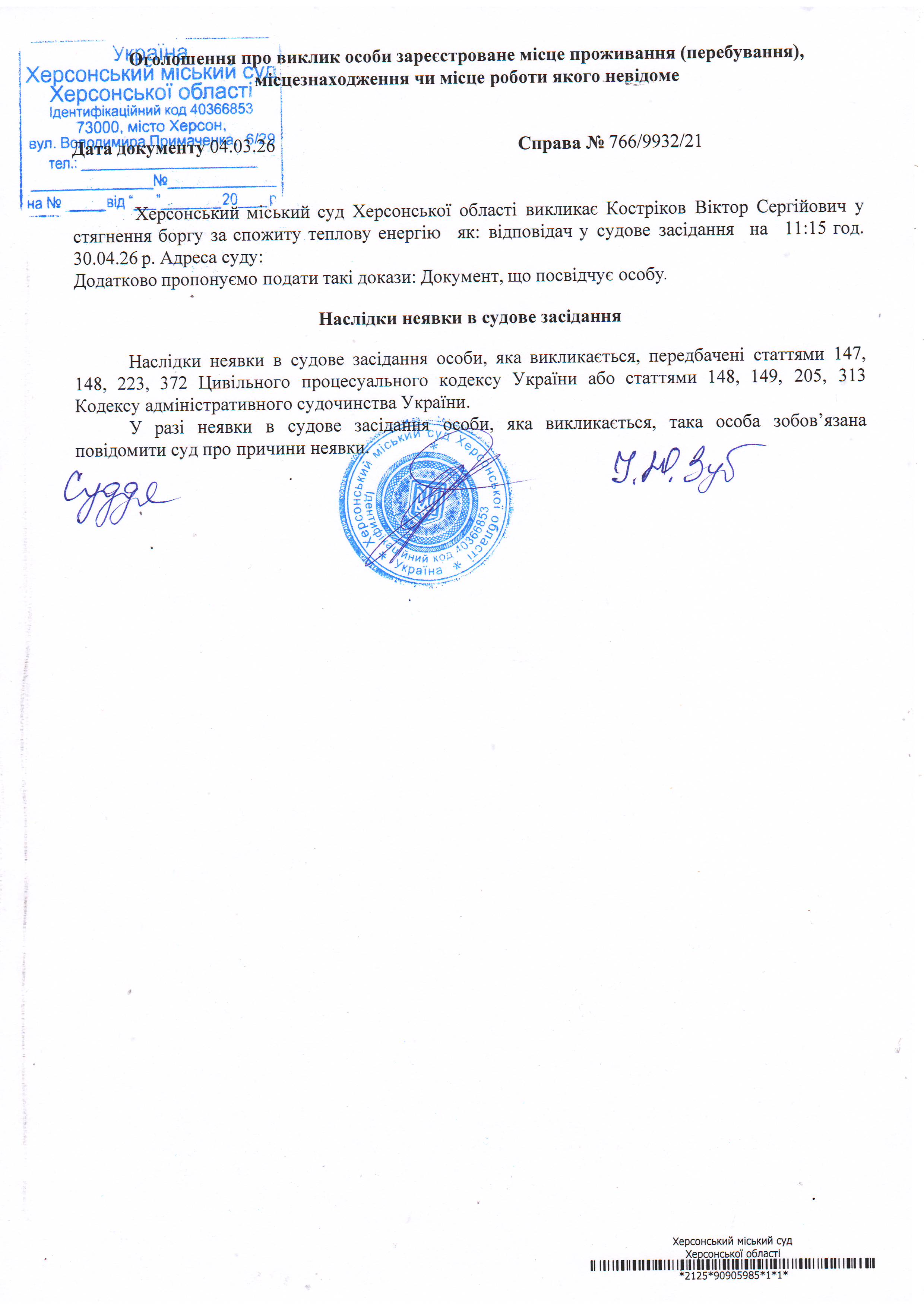 ОГОЛОШЕННЯ ПРО ВИКЛИК ДО СУДУ