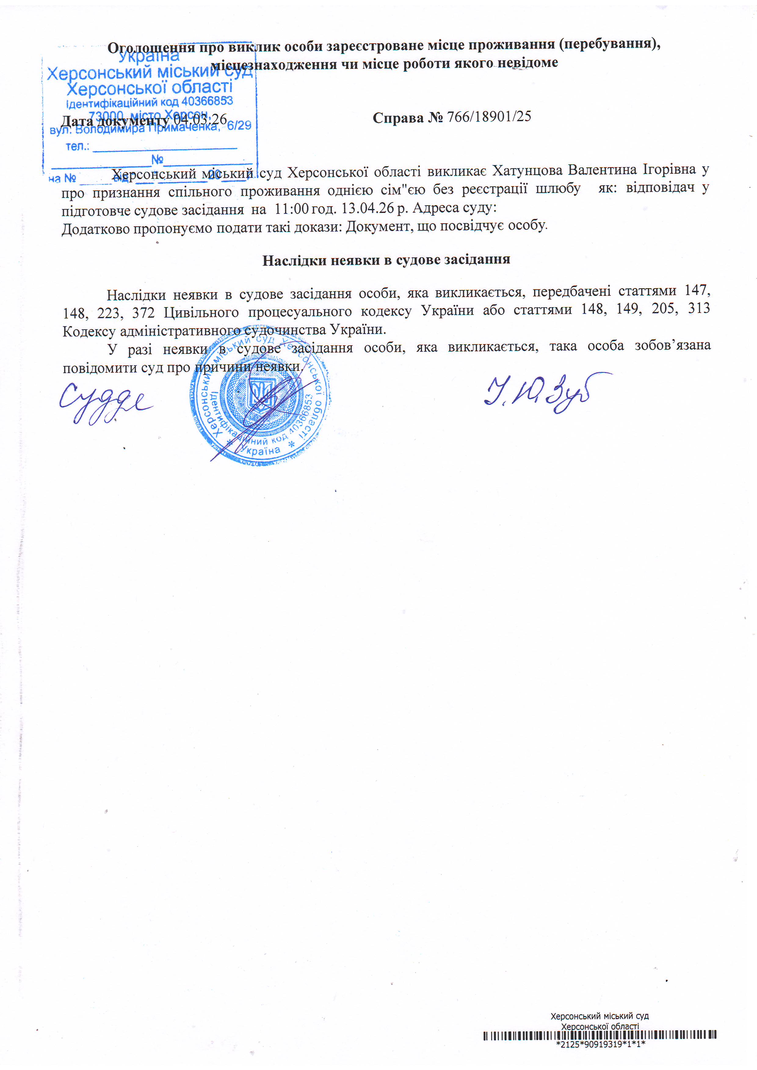 ОГОЛОШЕННЯ ПРО ВИКЛИК ДО СУДУ