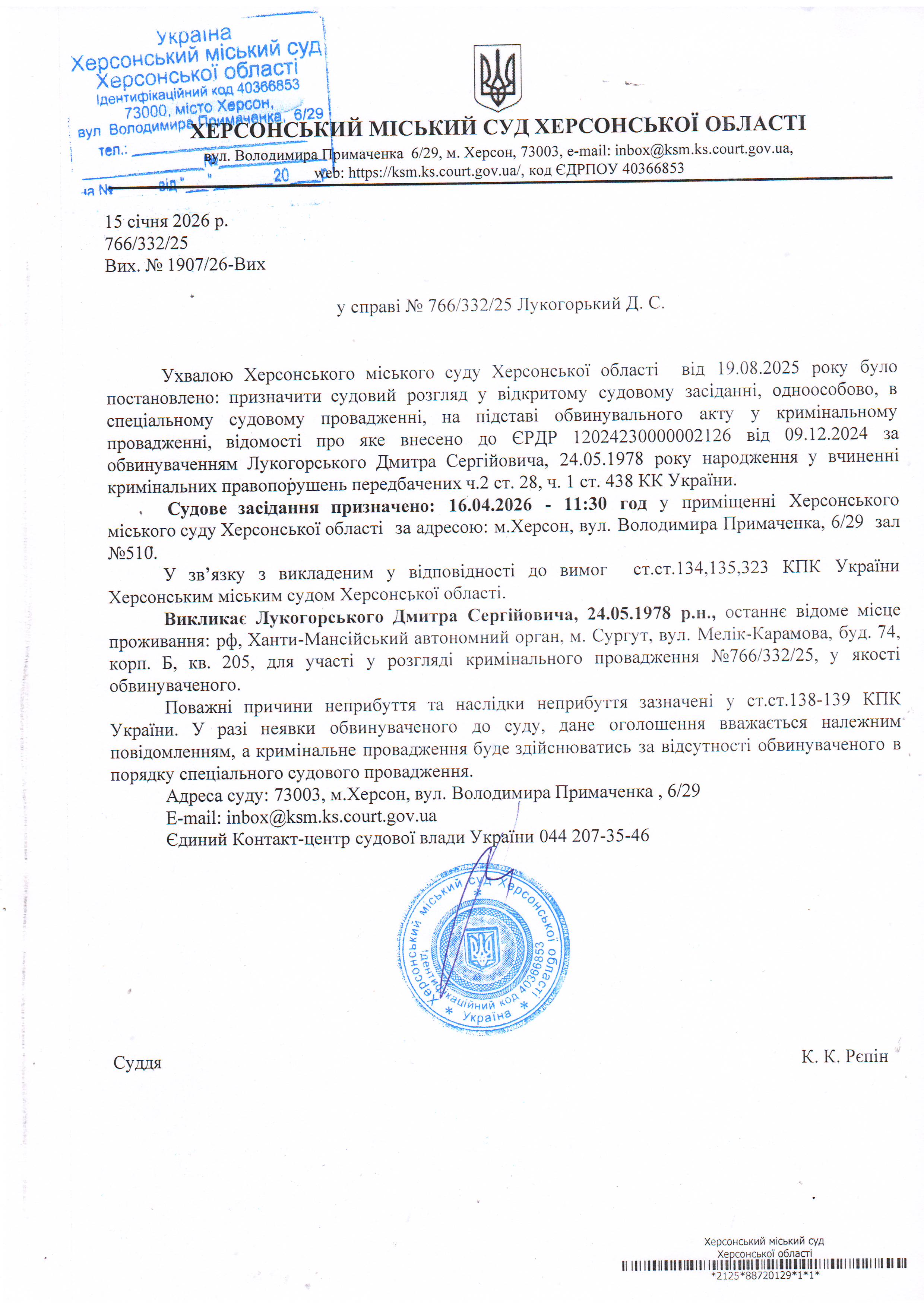 Інформація про місцезнаходження Херсонського міського суду Херсонської області