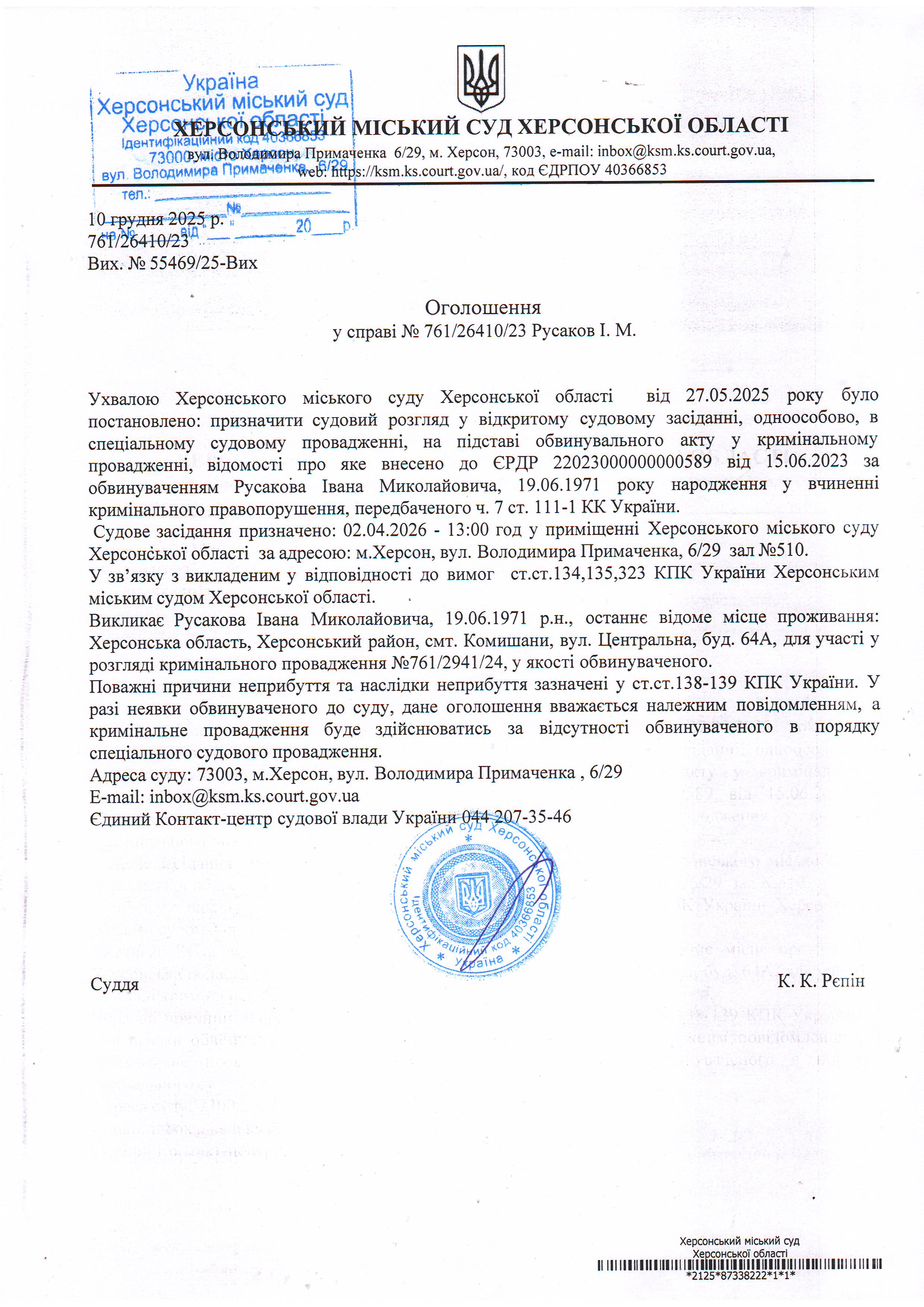 Оголошення про виклик особи в суд та повідомлення про судове рішення