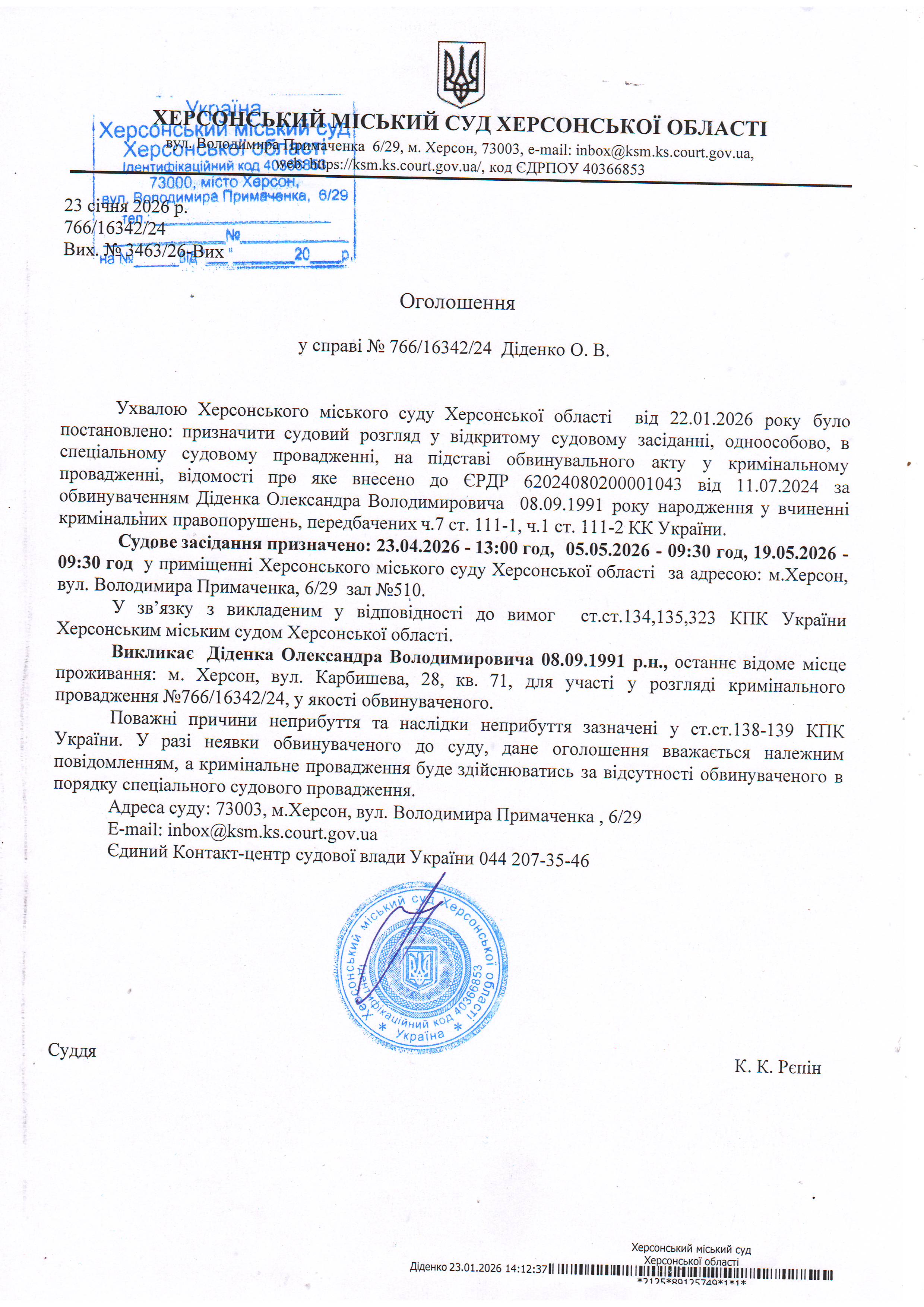 ОГОЛОШЕННЯ ПРО ВИКЛИК ДО СУДУ