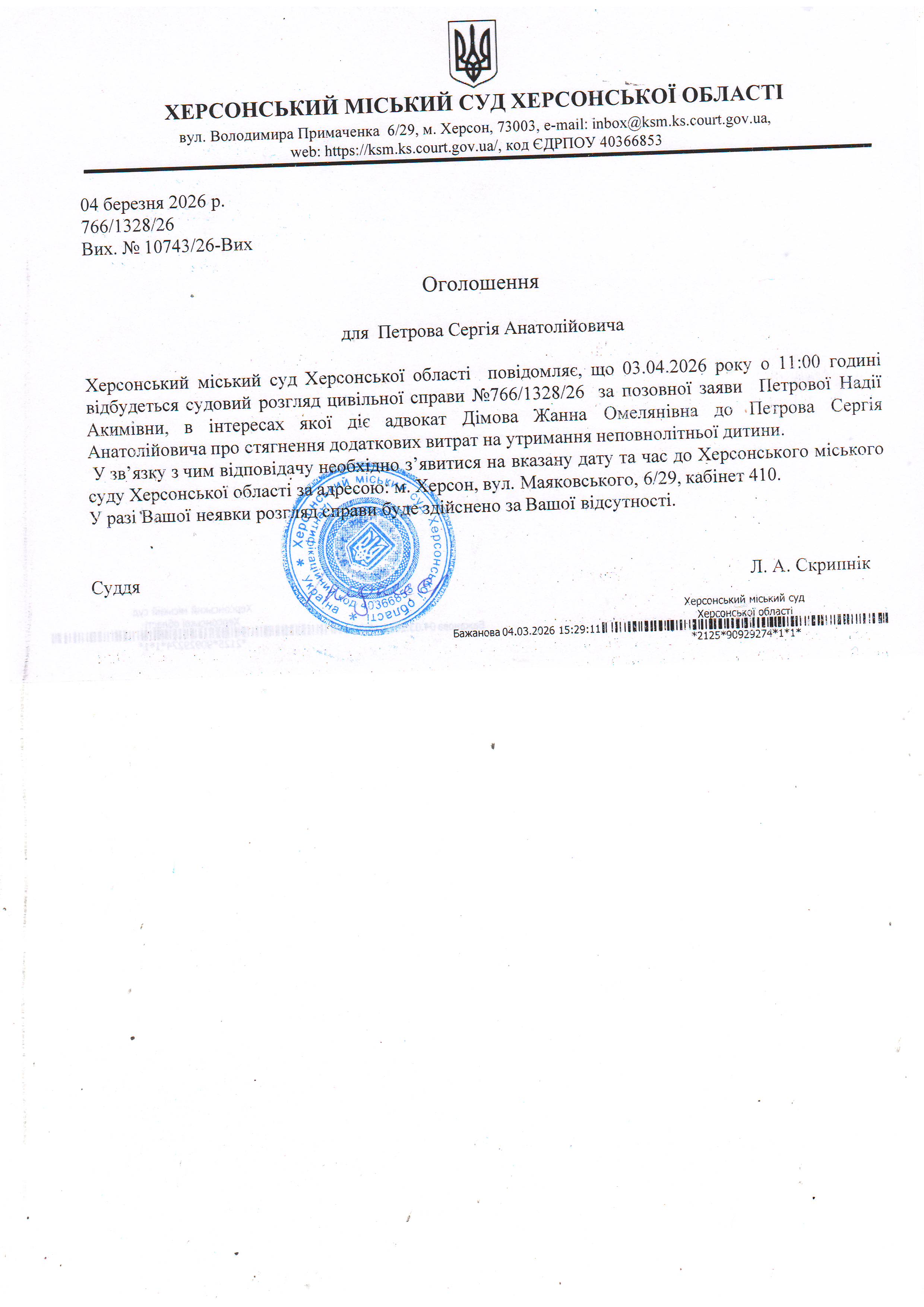 ОГОЛОШЕННЯ ПРО ВИКЛИК ДО СУДУ
