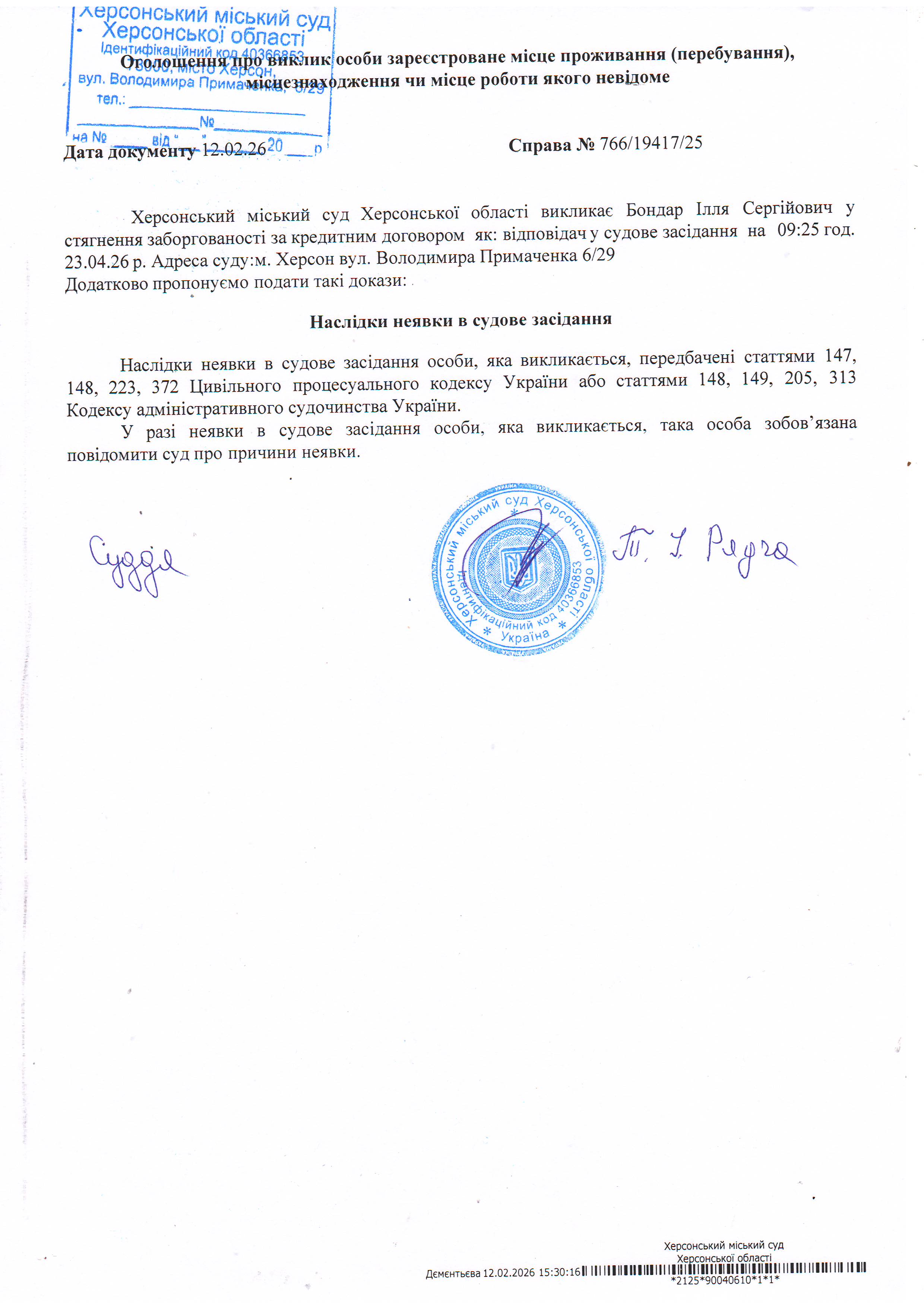 ОГОЛОШЕННЯ ПРО ВИКЛИК ДО СУДУ