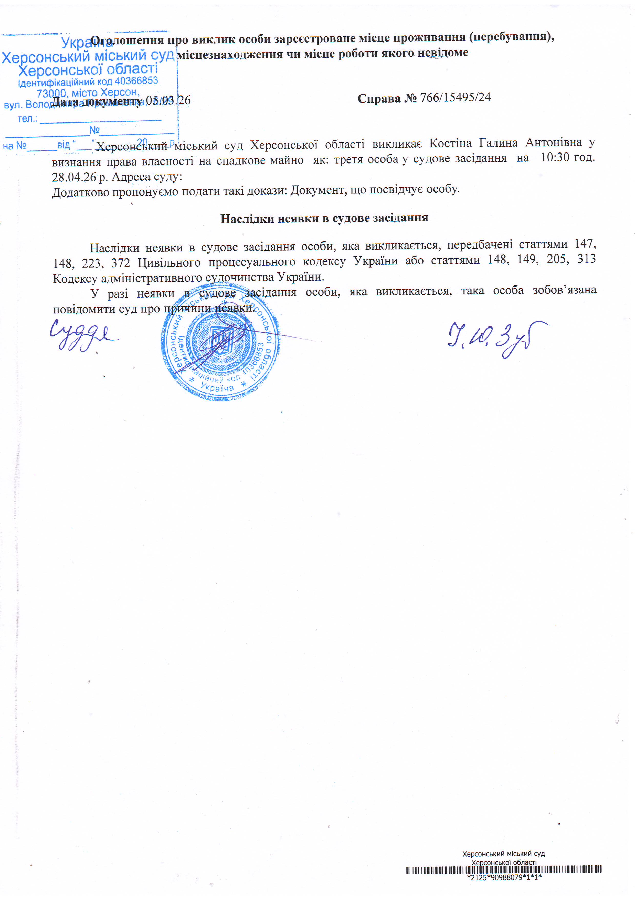 ОГОЛОШЕННЯ ПРО ВИКЛИК ДО СУДУ