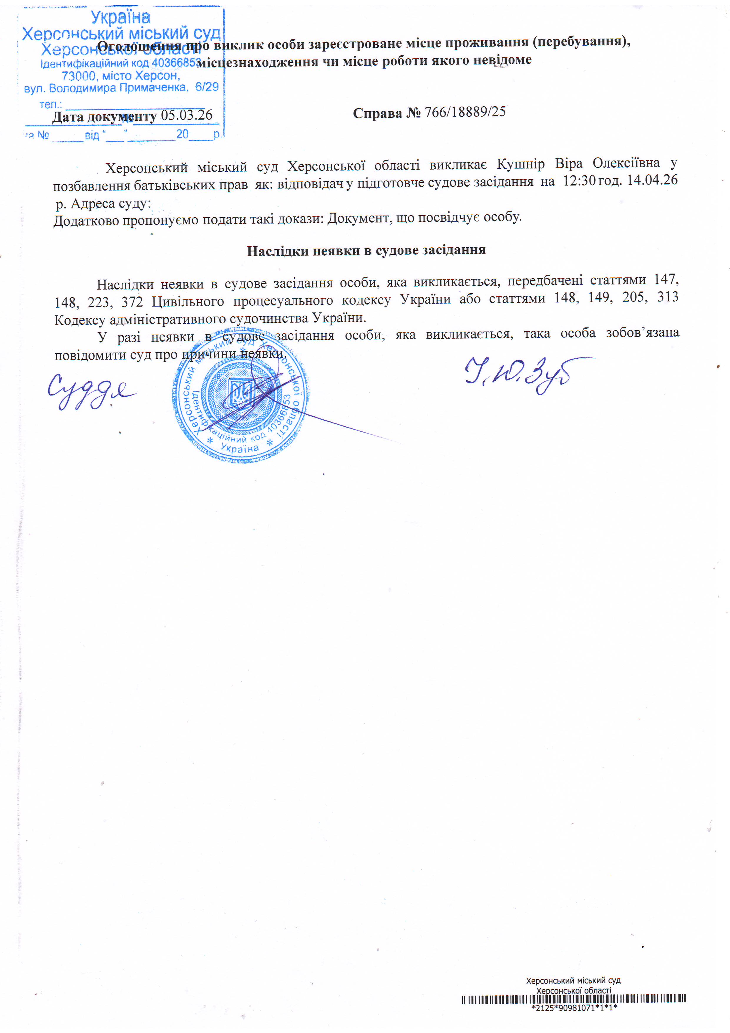 ОГОЛОШЕННЯ ПРО ВИКЛИК ДО СУДУ