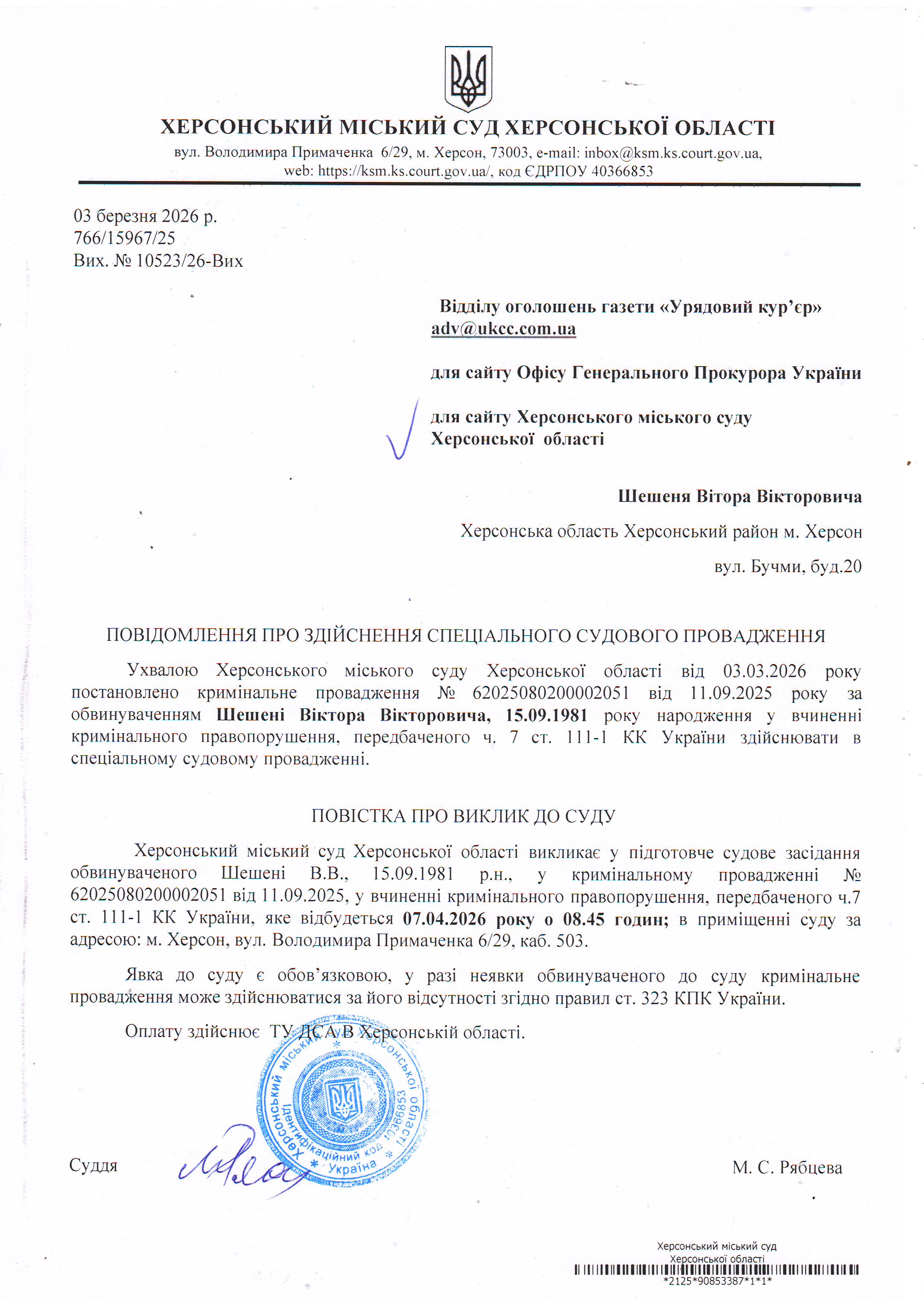 ОГОЛОШЕННЯ ПРО ВИКЛИК ДО СУДУ