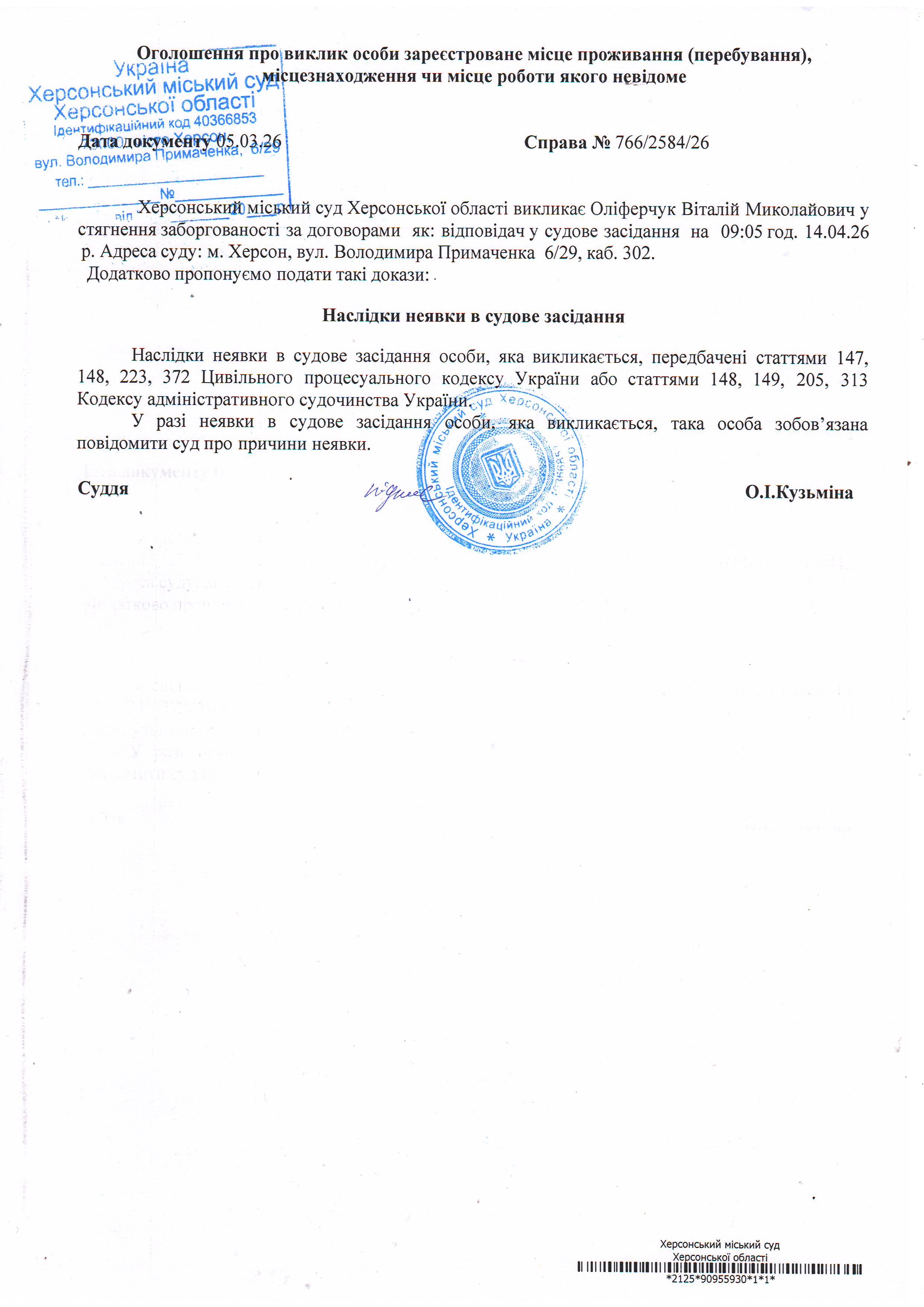 ОГОЛОШЕННЯ ПРО ВИКЛИК ДО СУДУ