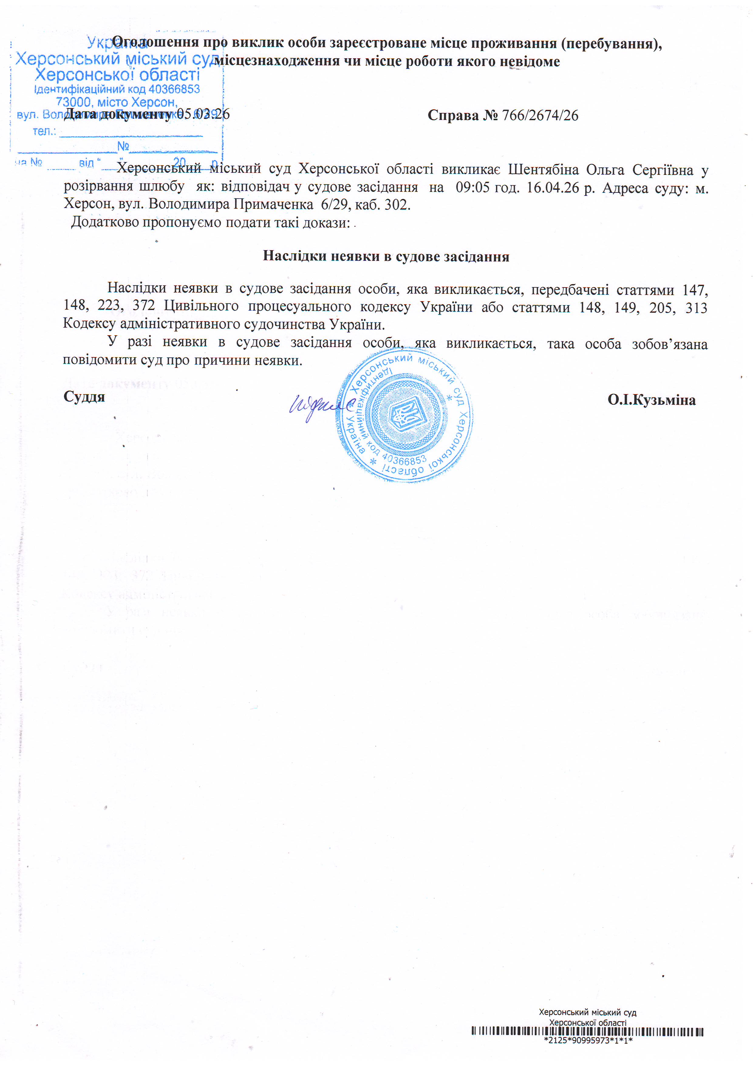 ОГОЛОШЕННЯ ПРО ВИКЛИК ДО СУДУ