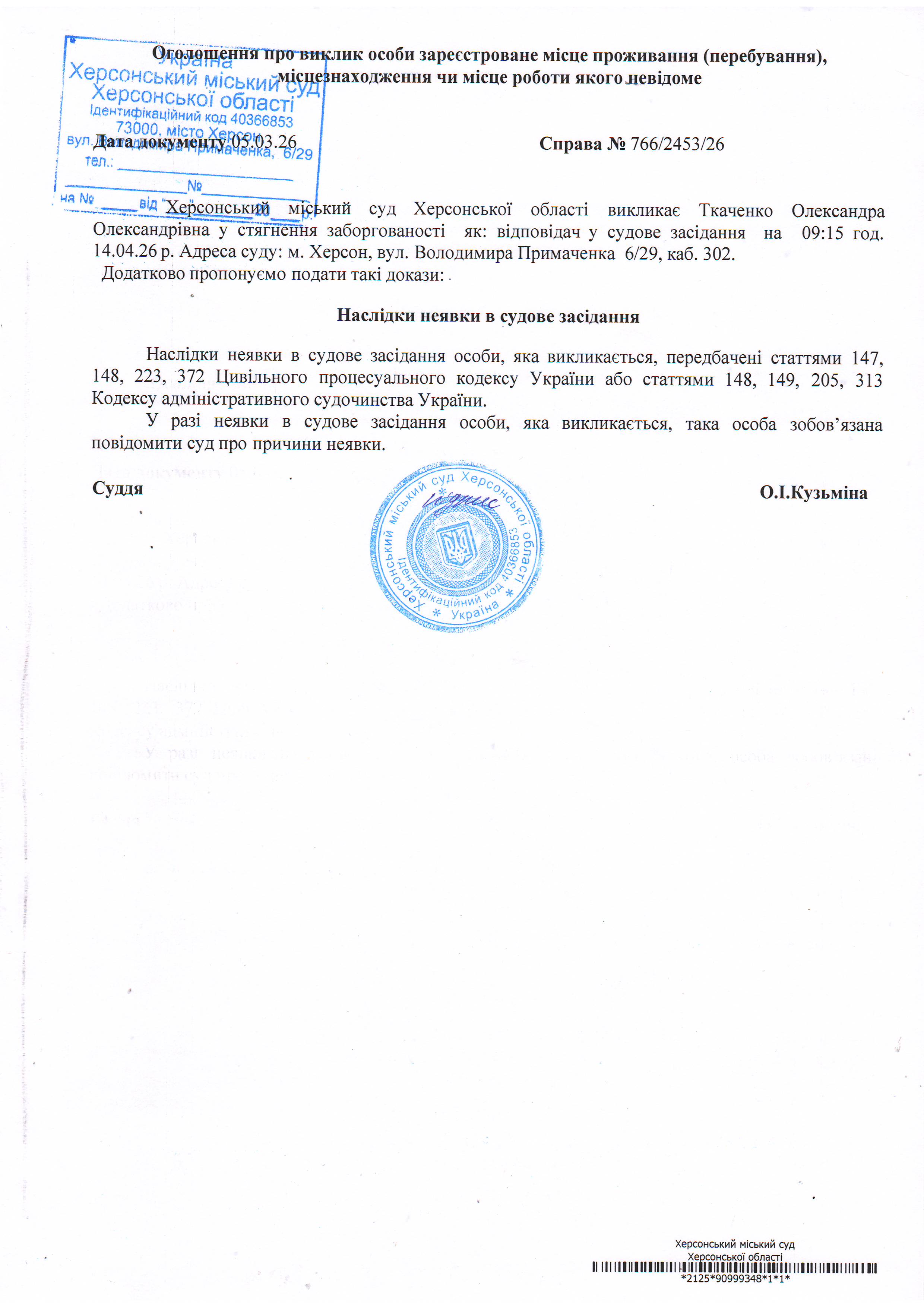 ОГОЛОШЕННЯ ПРО ВИКЛИК ДО СУДУ