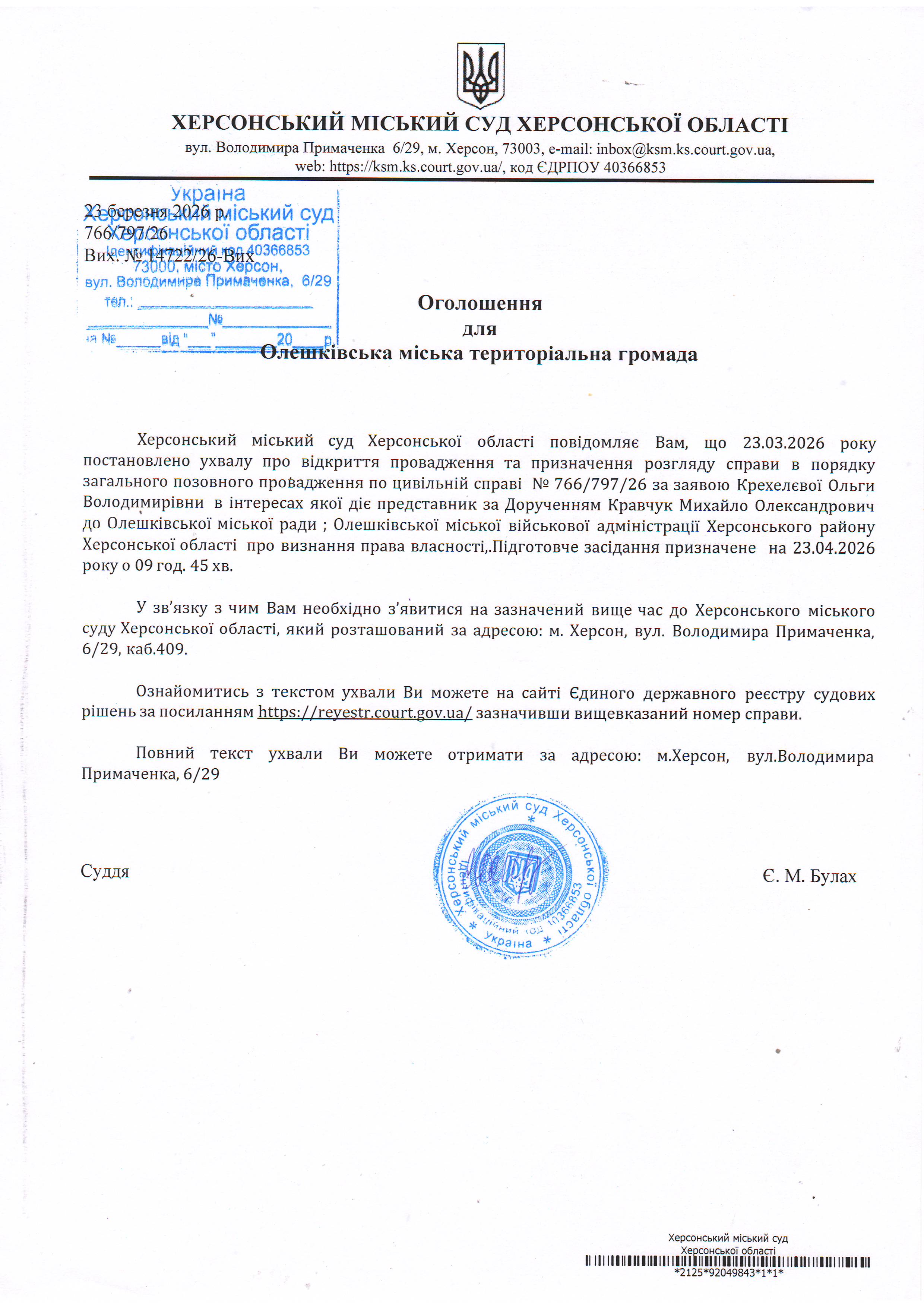ОГОЛОШЕННЯ, УХВАЛИ ТА ЗАОЧНІ РІШЕННЯ