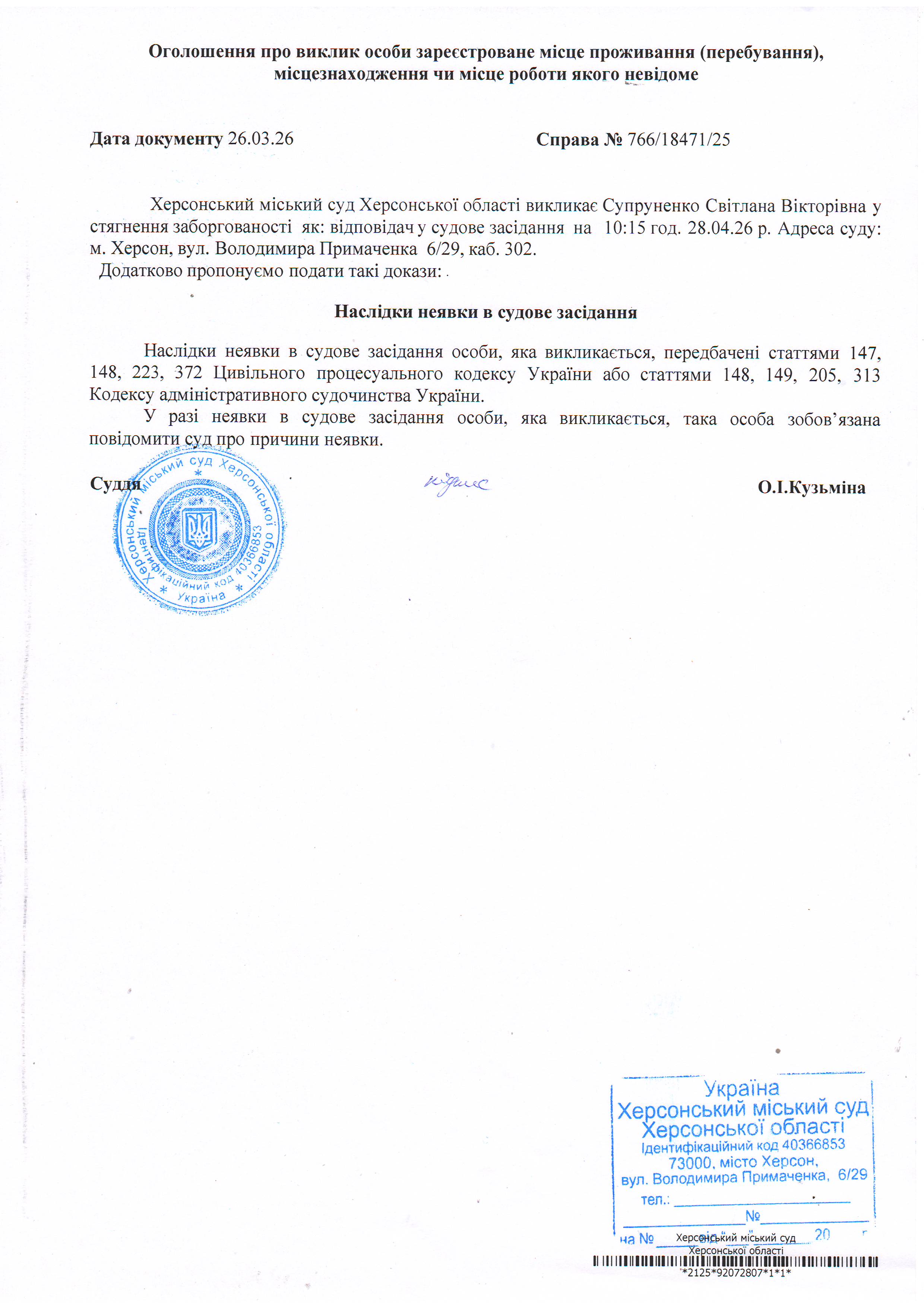 ОГОЛОШЕННЯ ПРО ВИКЛИК ДО СУДУ