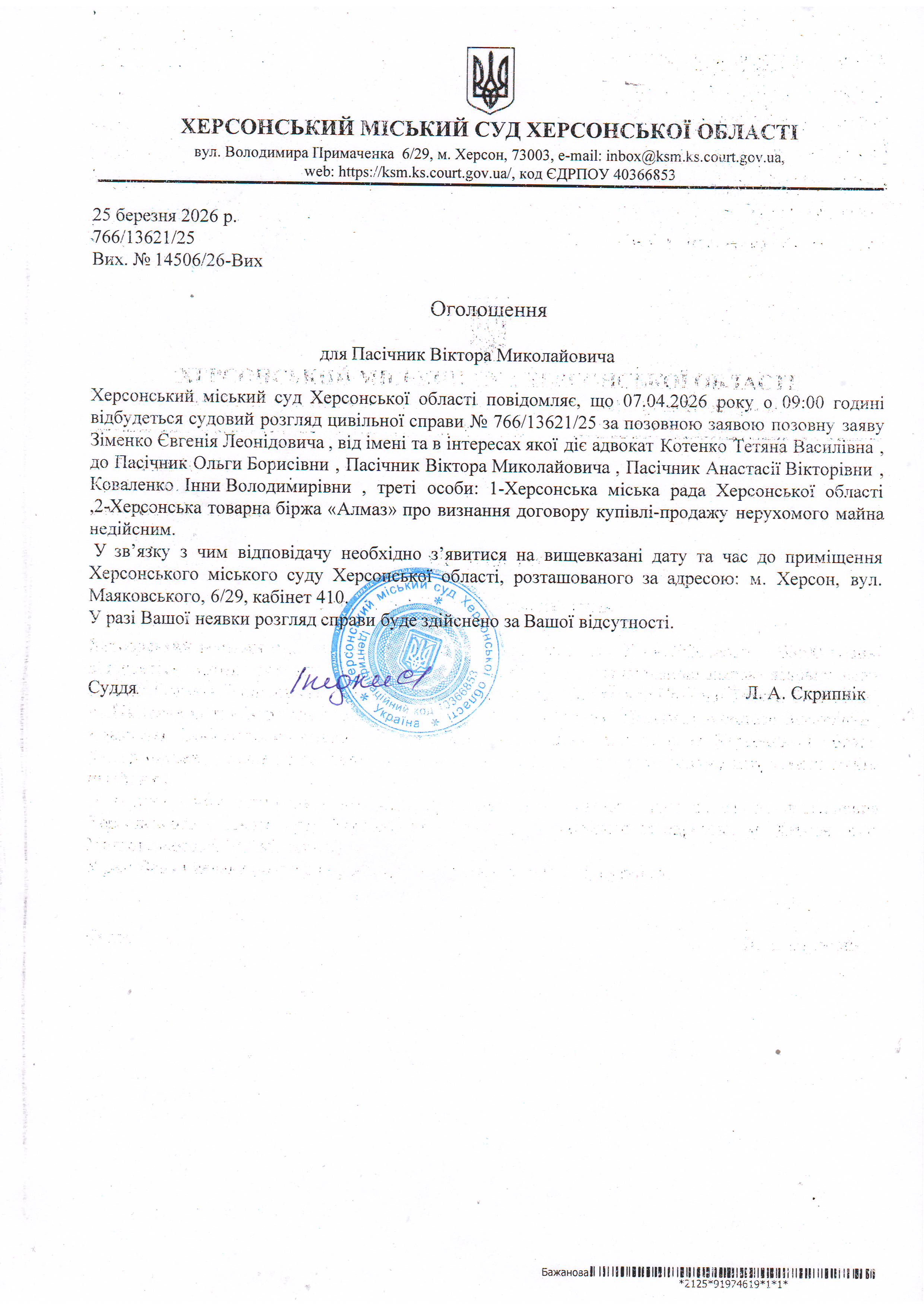 ОГОЛОШЕННЯ ПРО ВИКЛИК ДО СУДУ