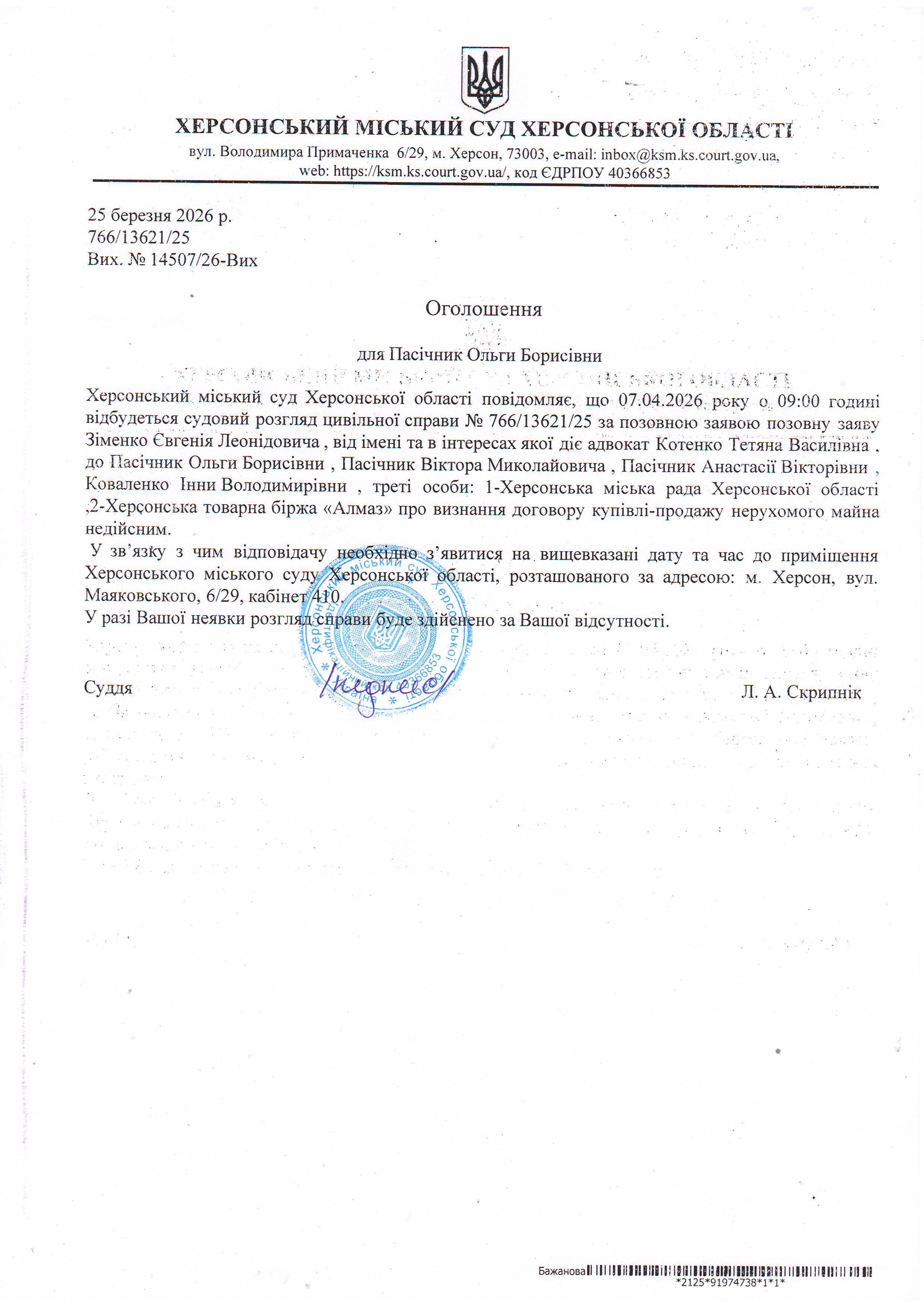 ОГОЛОШЕННЯ ПРО ВИКЛИК ДО СУДУ