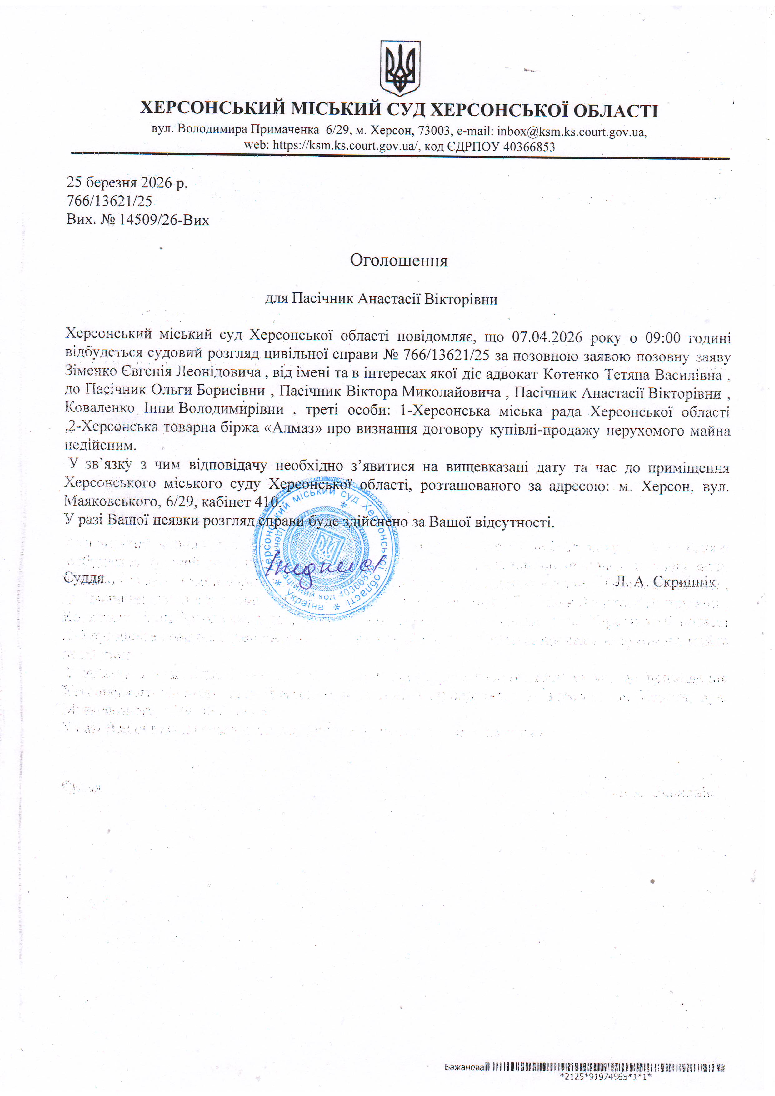 ОГОЛОШЕННЯ ПРО ВИКЛИК ДО СУДУ