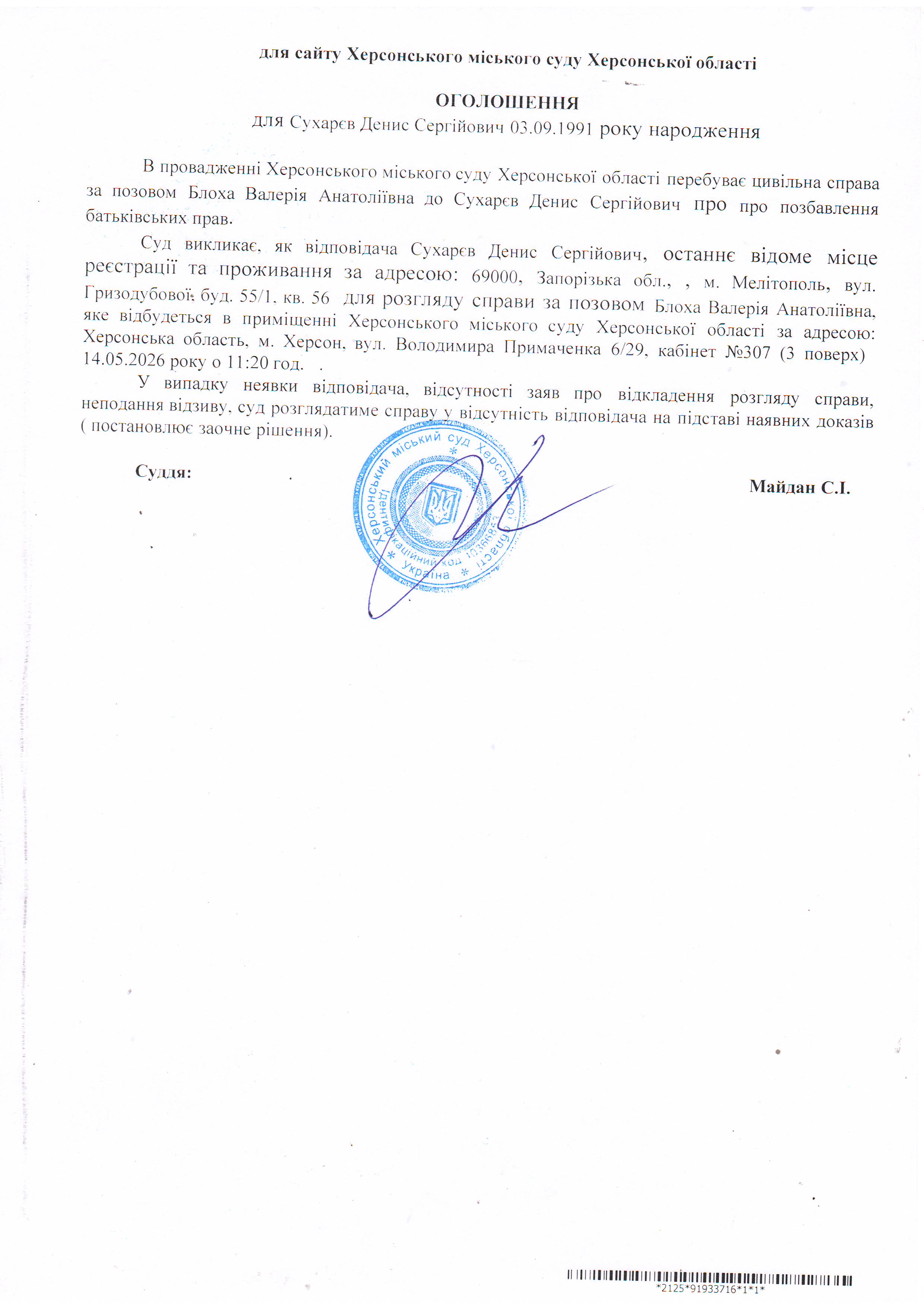 ОГОЛОШЕННЯ ПРО ВИКЛИК ДО СУДУ