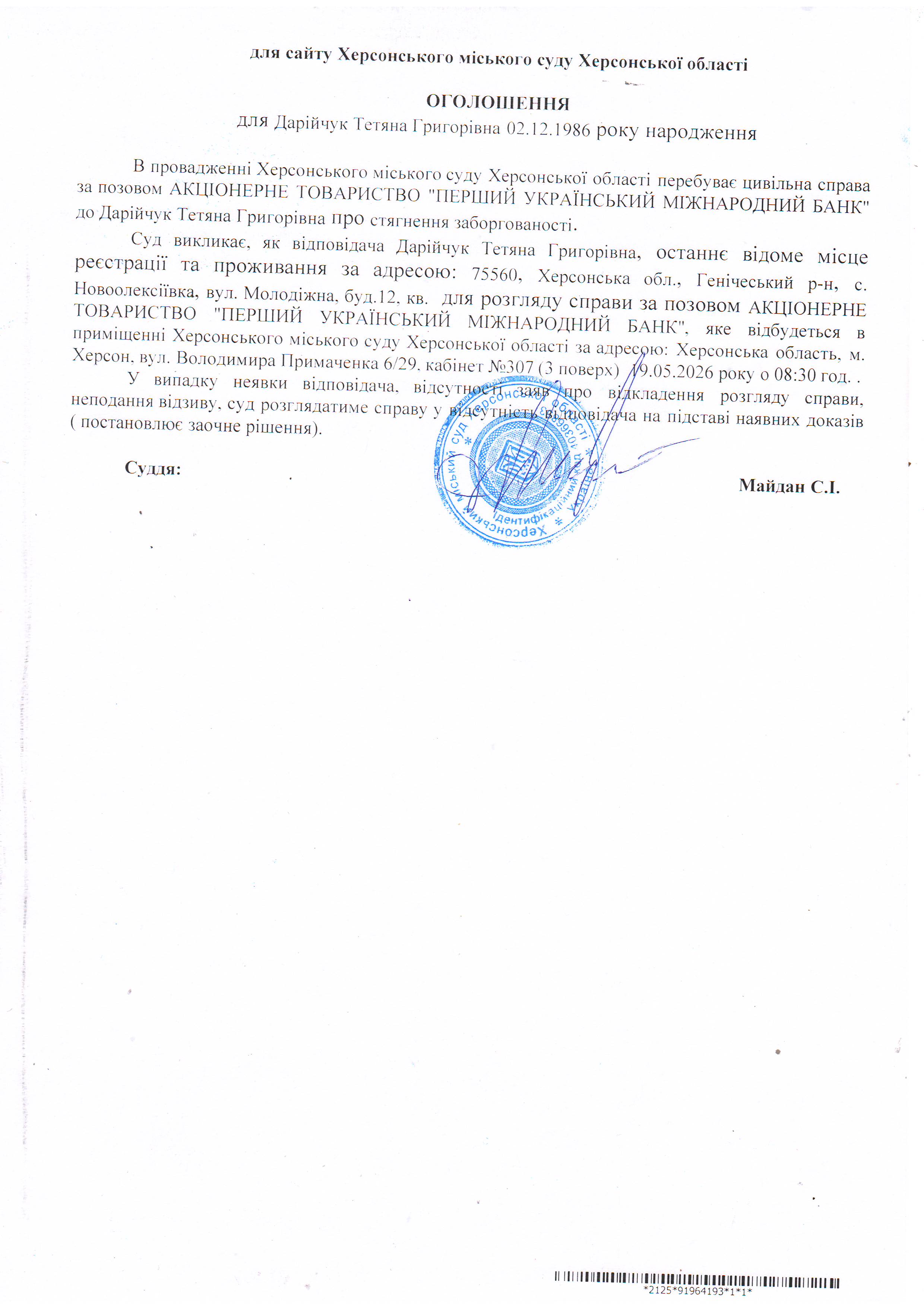 ОГОЛОШЕННЯ ПРО ВИКЛИК ДО СУДУ