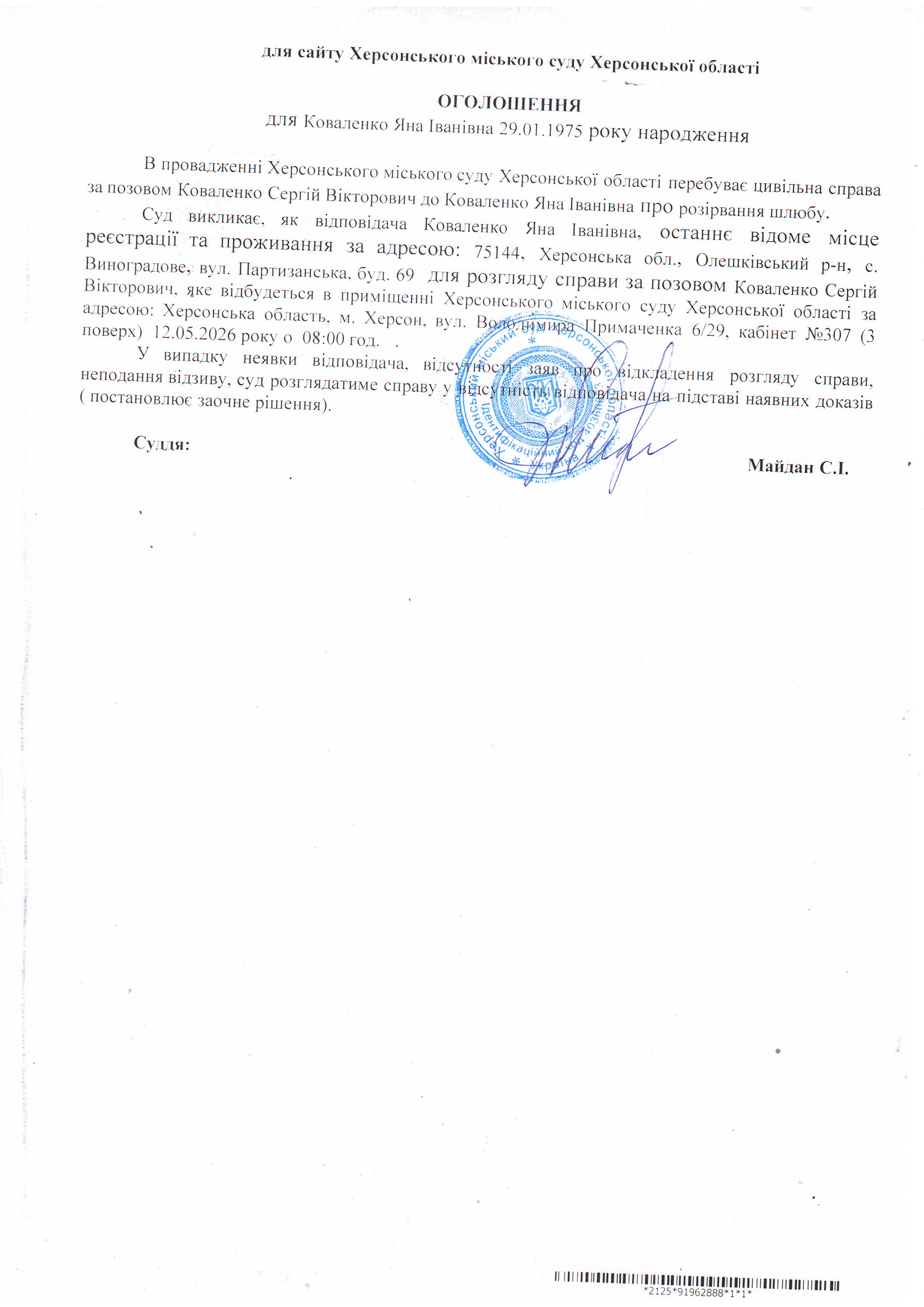 ОГОЛОШЕННЯ ПРО ВИКЛИК ДО СУДУ