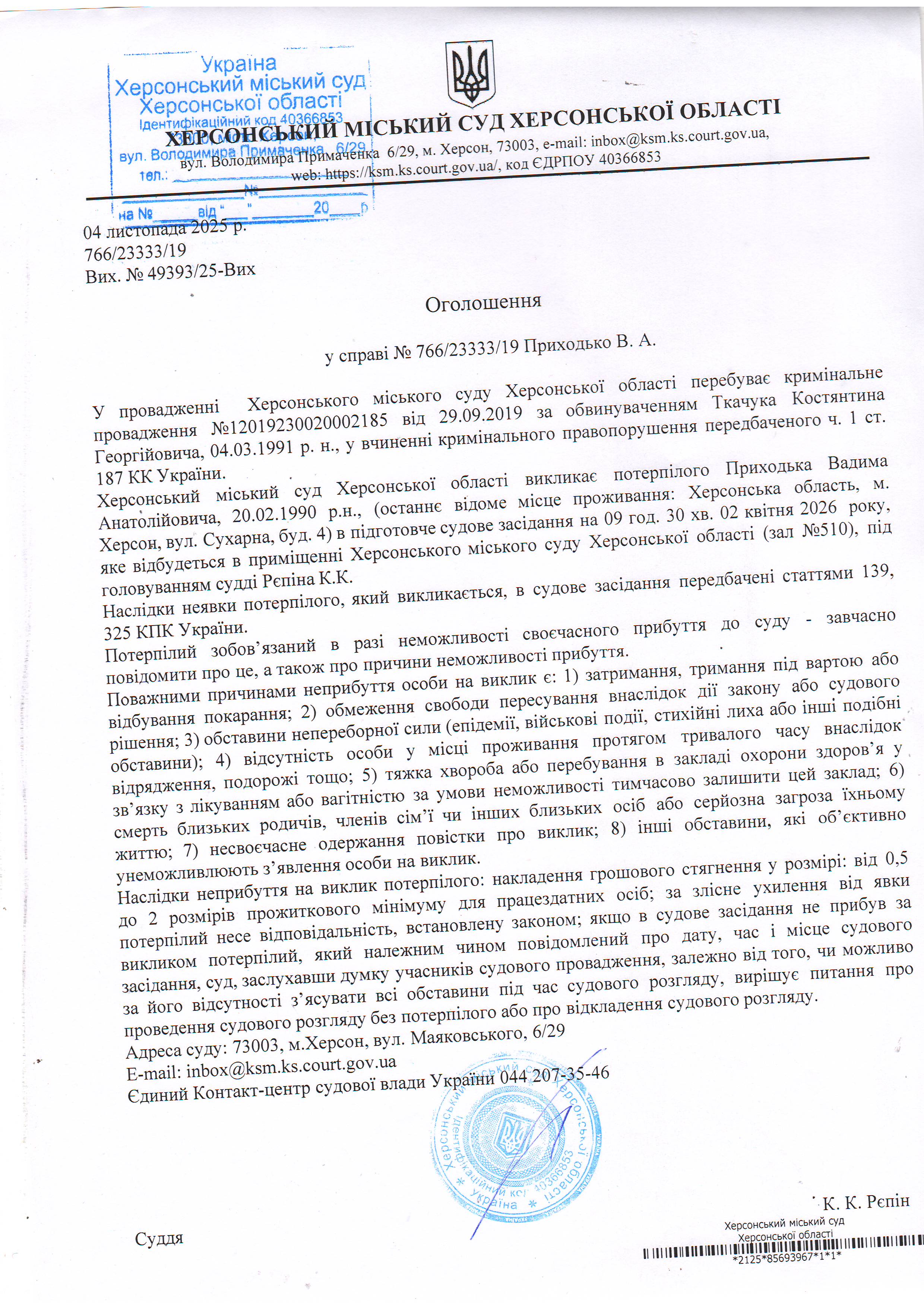 ОГОЛОШЕННЯ ПРО ВИКЛИК ДО СУДУ