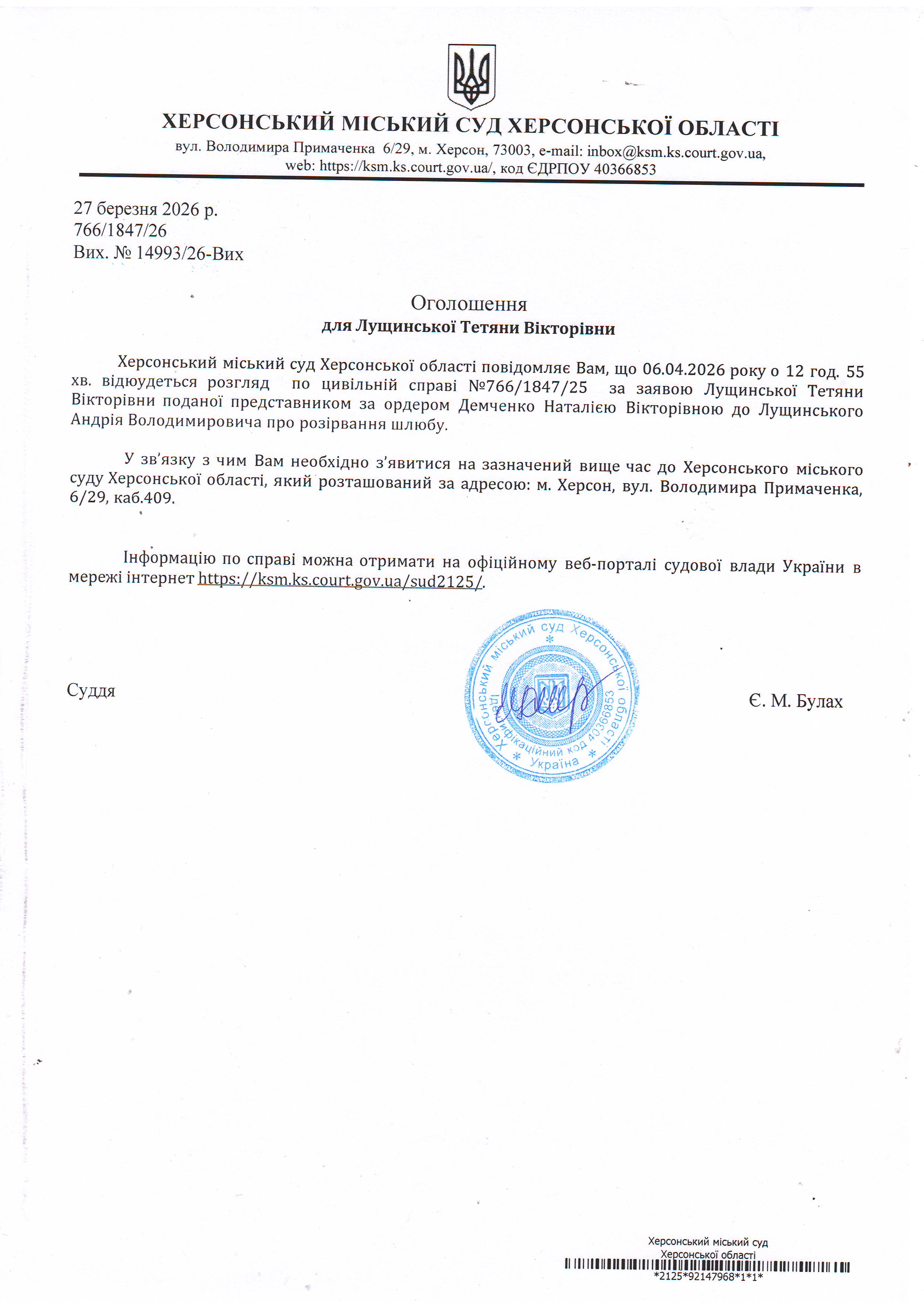 ОГОЛОШЕННЯ ПРО ВИКЛИК ДО СУДУ