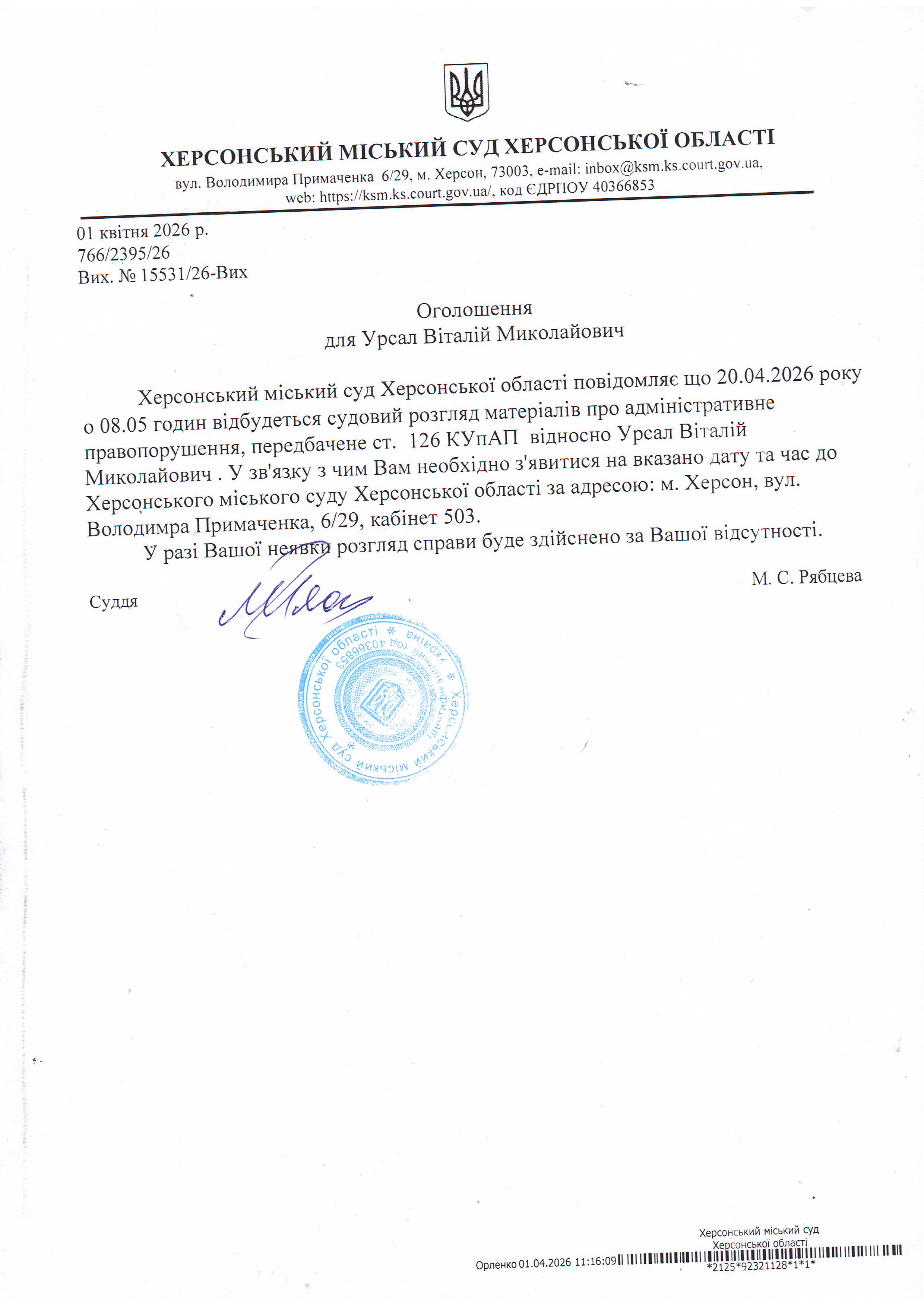 ОГОЛОШЕННЯ ПРО ВИКЛИК ДО СУДУ