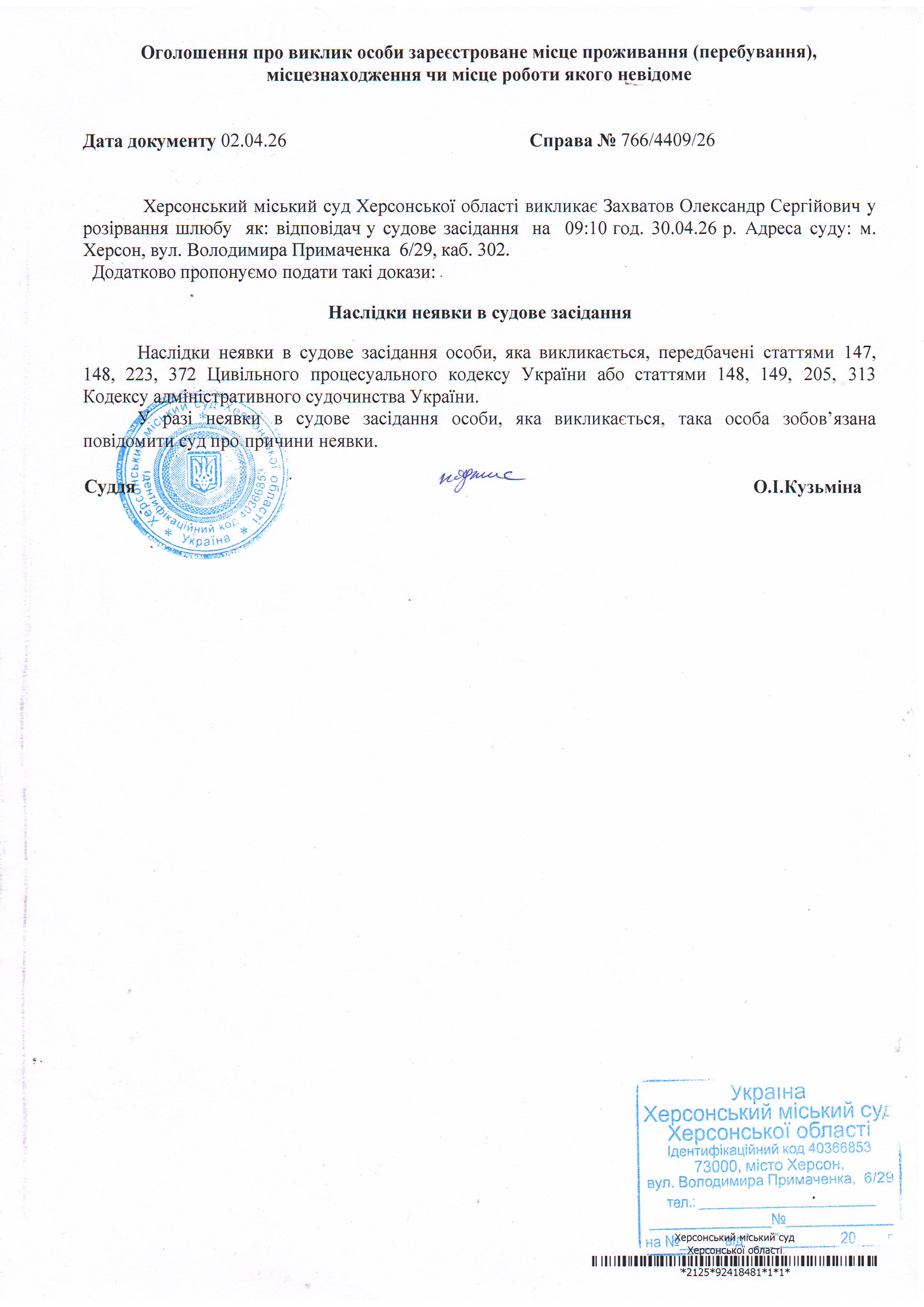 ОГОЛОШЕННЯ ПРО ВИКЛИК ДО СУДУ