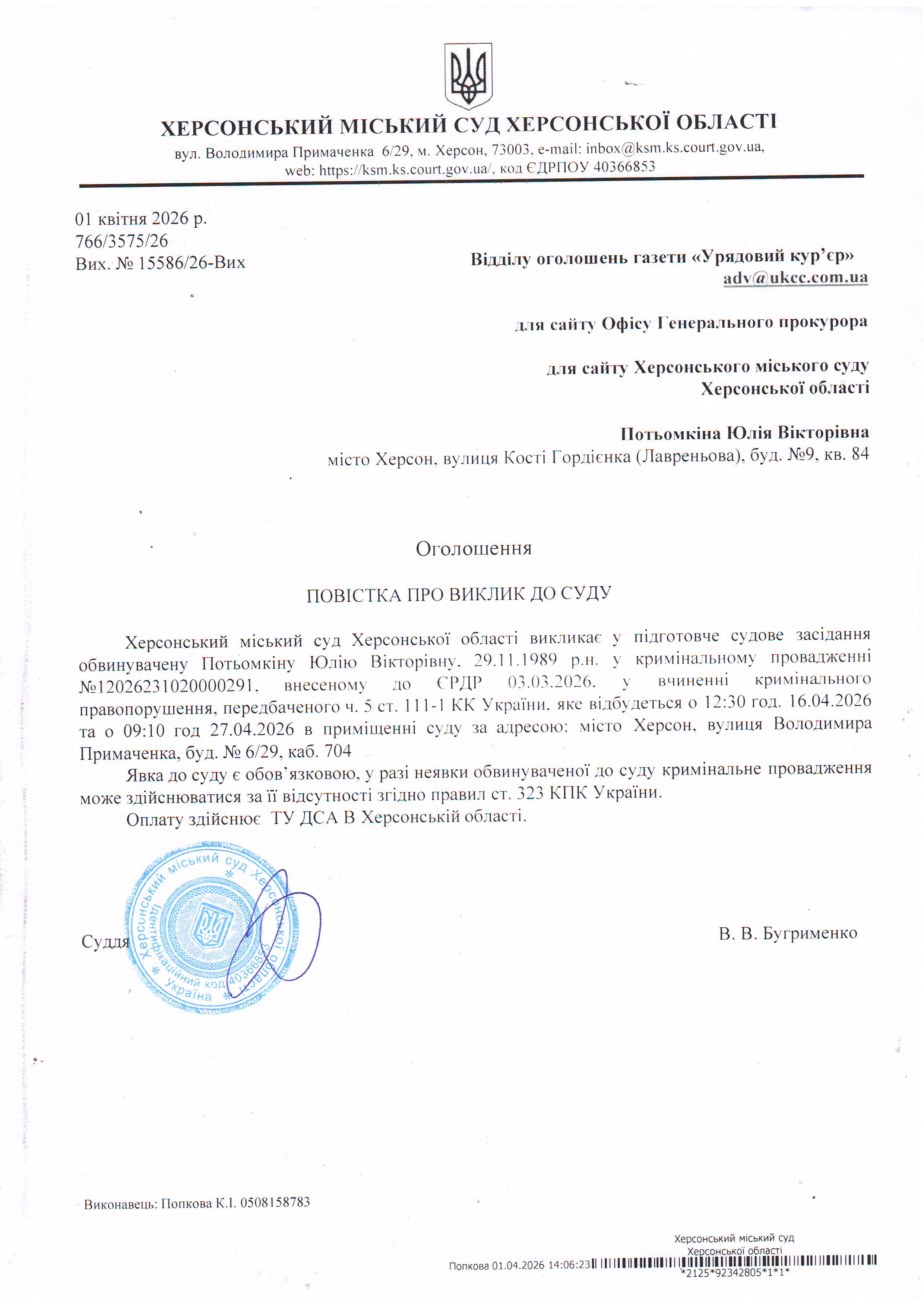 ОГОЛОШЕННЯ ПРО ВИКЛИК ДО СУДУ