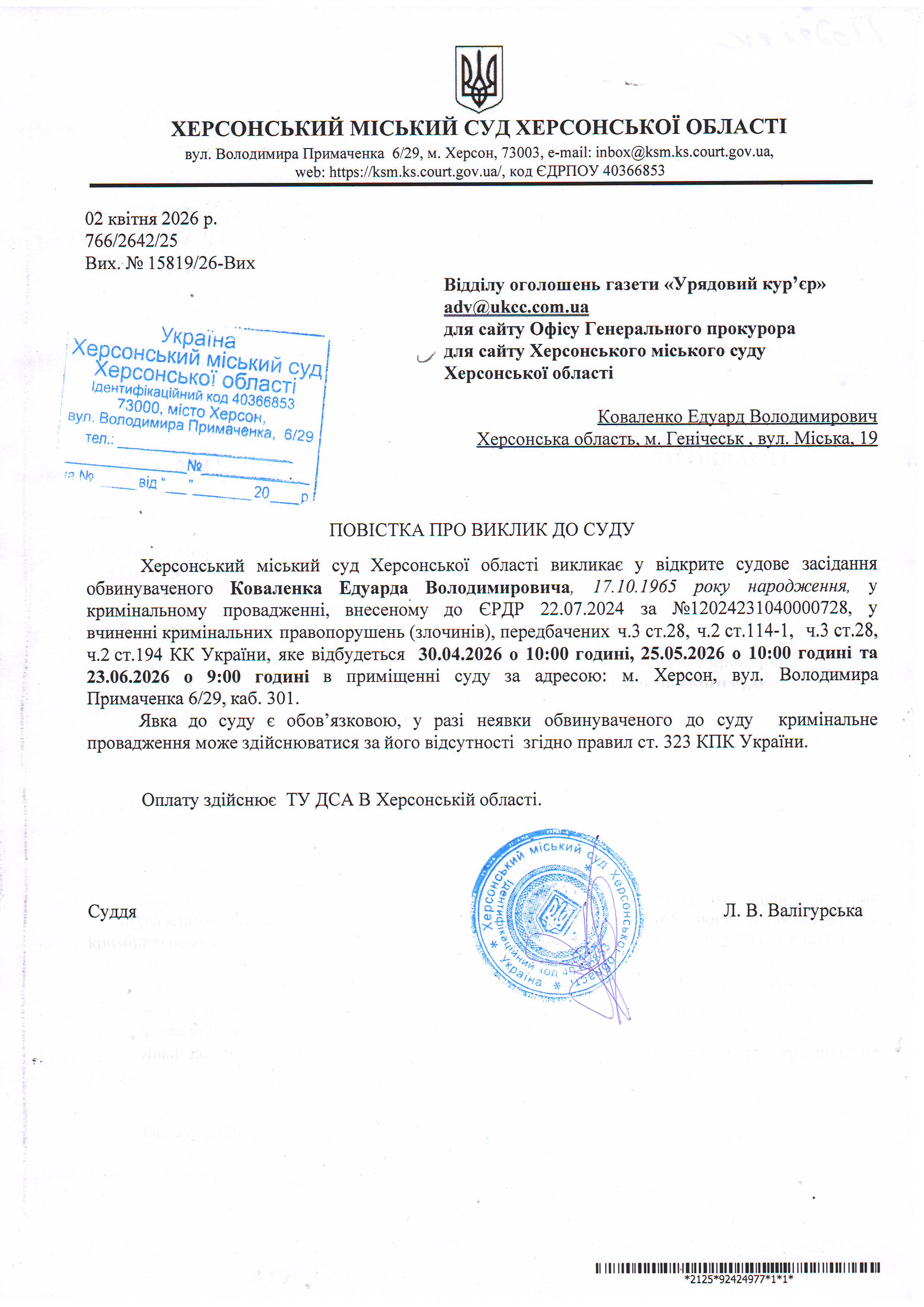 ОГОЛОШЕННЯ ПРО ВИКЛИК ДО СУДУ