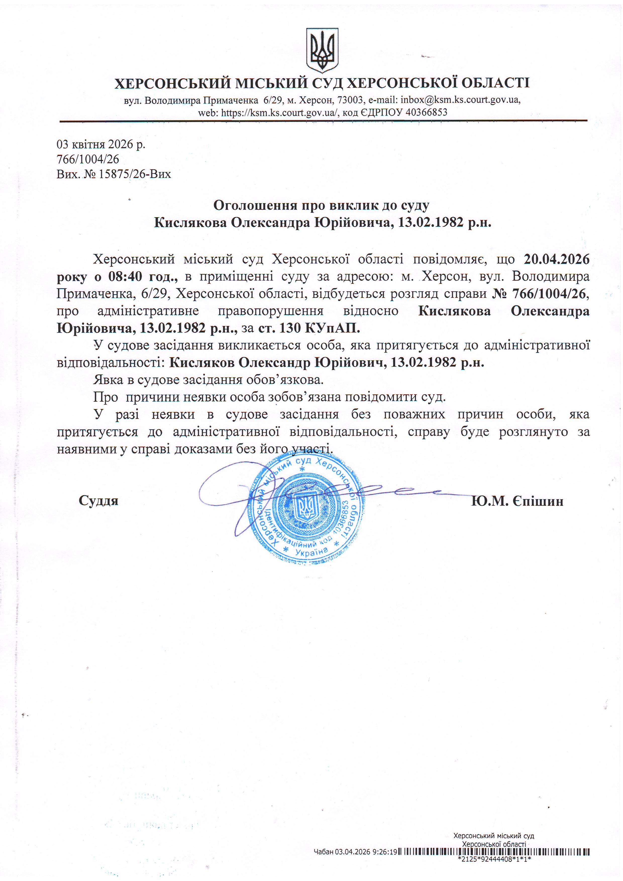 ОГОЛОШЕННЯ ПРО ВИКЛИК ДО СУДУ