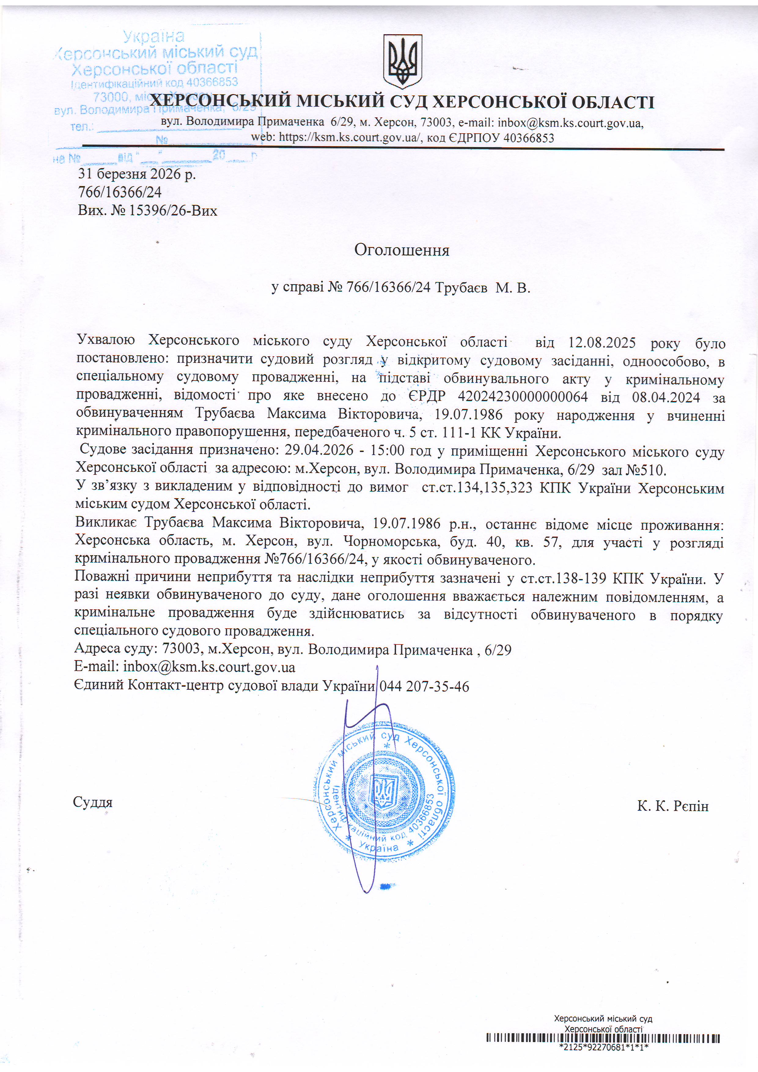 ОГОЛОШЕННЯ ПРО ВИКЛИК ДО СУДУ
