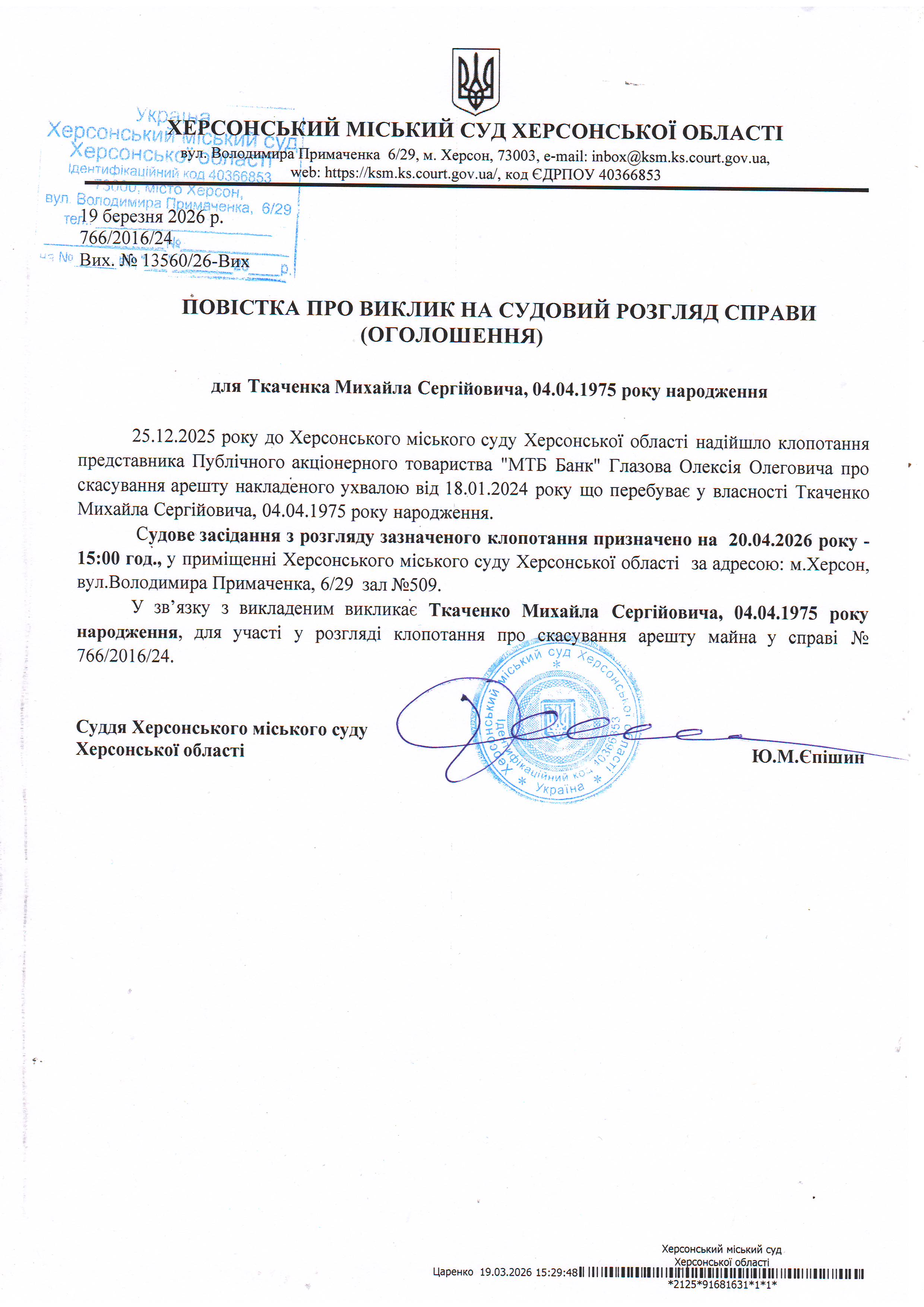 ОГОЛОШЕННЯ ПРО ВИКЛИК ДО СУДУ